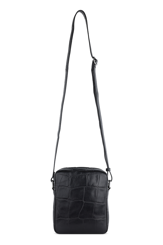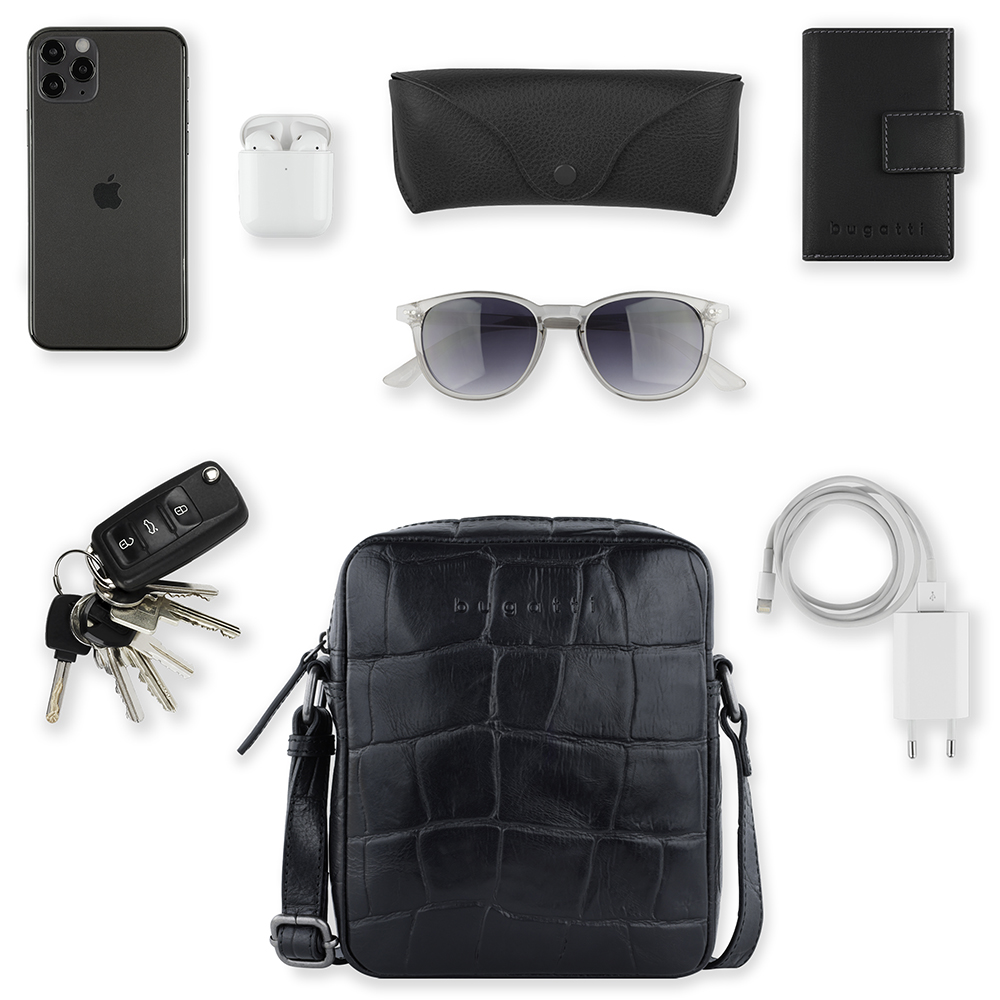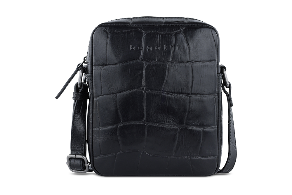 Сумка наплечная мужская BUGATTI Nevio, чёрная, воловья кожа/хлопок, 17,5х5,5х19,5 см, 2 л
