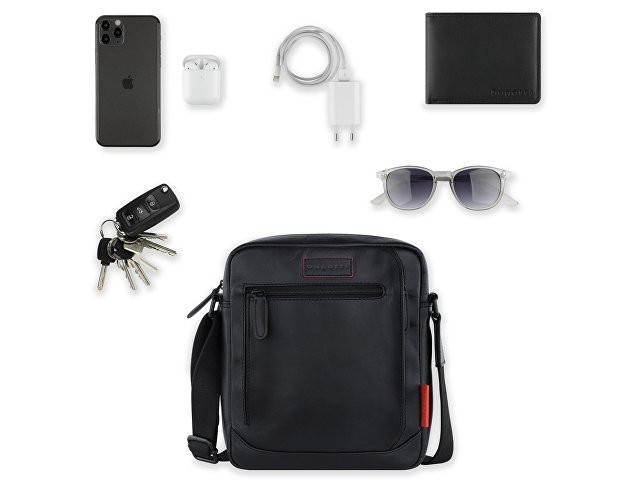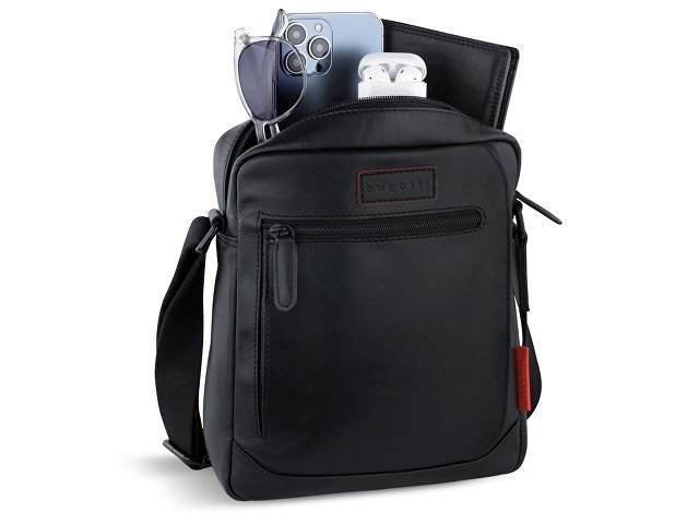 Внешняя организация: передний и боковой карманы на молнии, задний карман на молнии, регулируемый плечевой ремень (до 150 см), пыльник в комплекте.