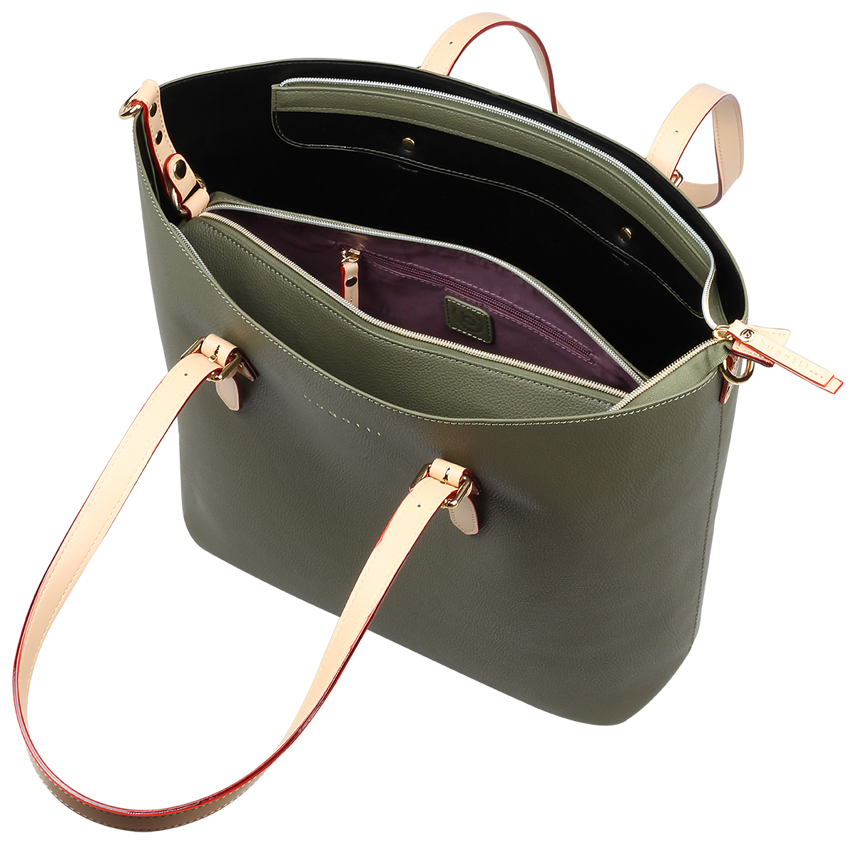 Внутренняя организация: основное отделение, включающее в себя сумочку на молнии с карманом на молнии и 2 открытыми карманами