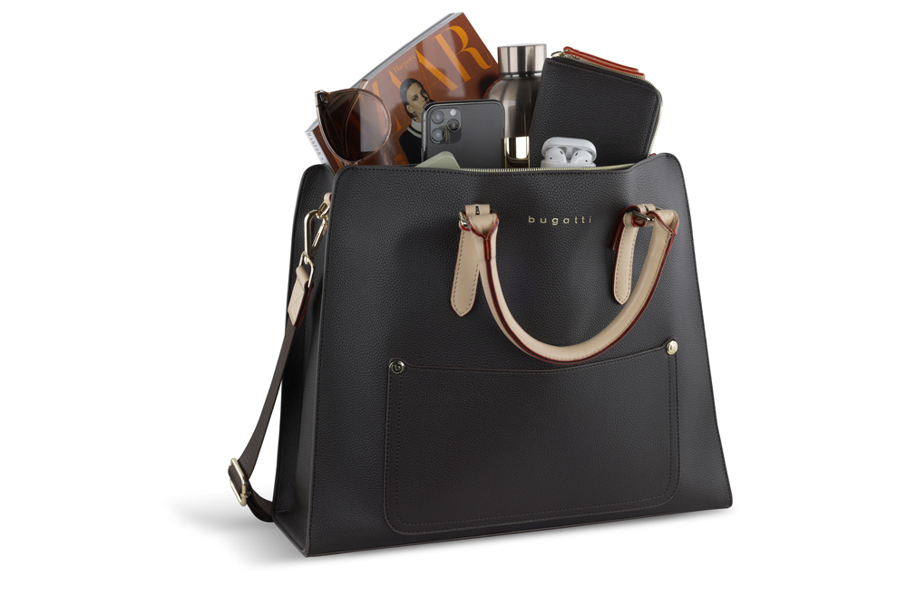 Сумка-шоппер BUGATTI Ella, темно-коричневая, полиуретан, 37х12х31 см