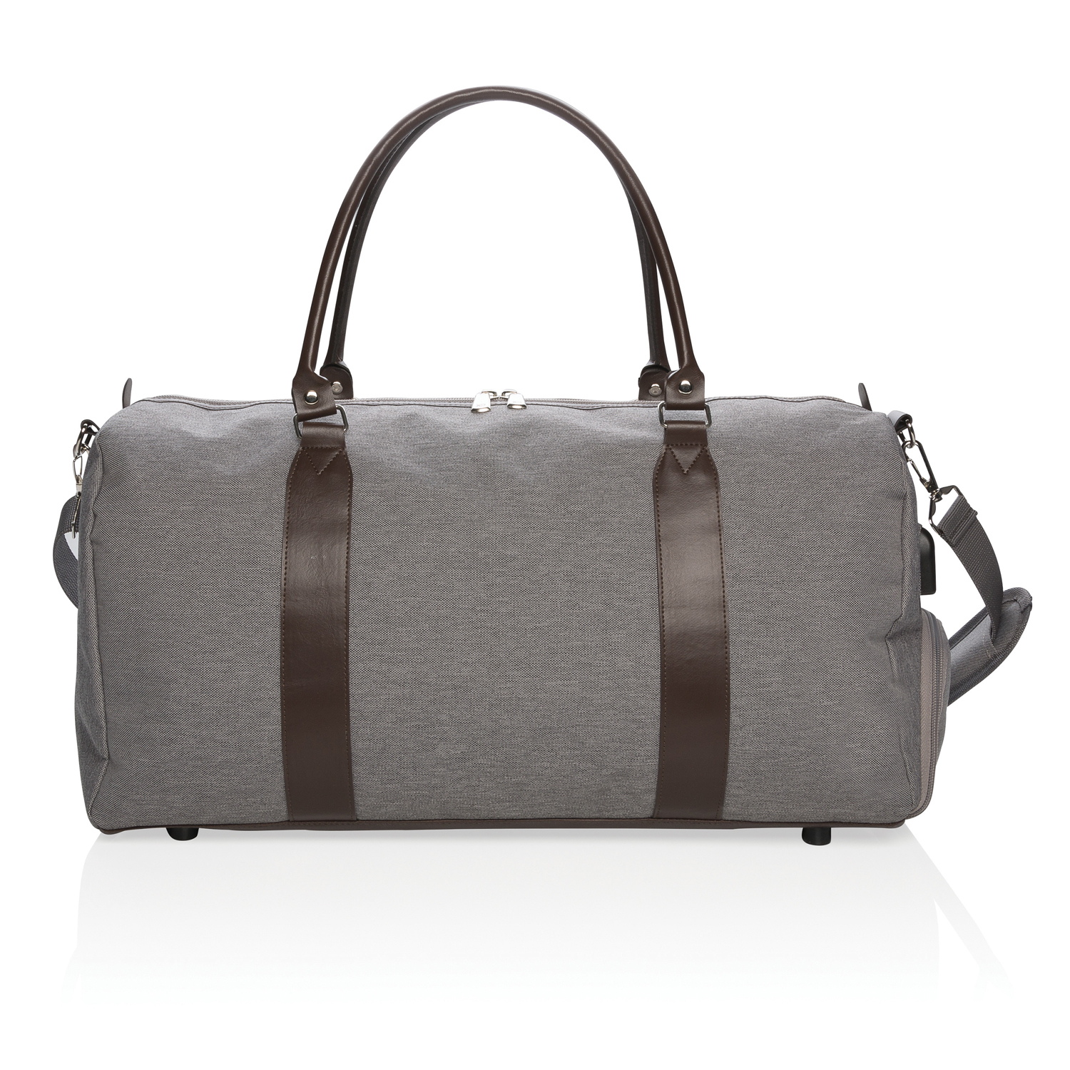 Сумка со встроенным USB - портом выполнена в лаконичном минималистическом дизайне из полиэстера 600D. Ручки и стильные элементы на сумке изготовлены из полиуретана, также на сумке предусмотрен удобный плечевой ремень. Во вместительном основном отделении найдется место для всего, что может пригодиться в поездке или на спортивной тренировке. Подключите телефон к интегрированному USB-порту на боковой части сумки, и вы сможете заряжать свои мобильные устройства на ходу. Небольшой наружный карман отлично подойдет для всех важных мелочей, которые всегда должны быть под рукой. Не содержит ПВХ.