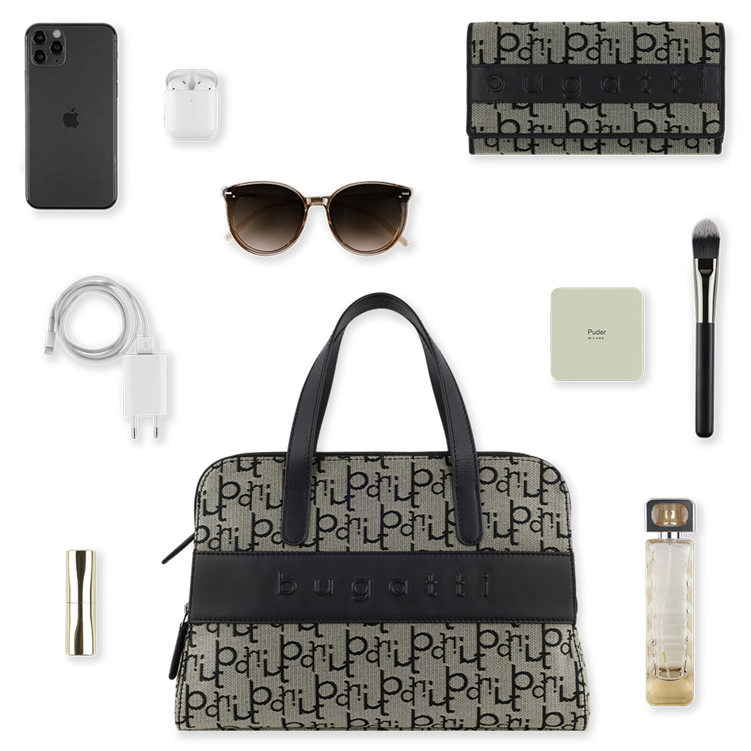 Сумка женская BUGATTI Elea, бежево-черный цвет, жаккард/воловья кожа/полиэстер, 32х12х21 см