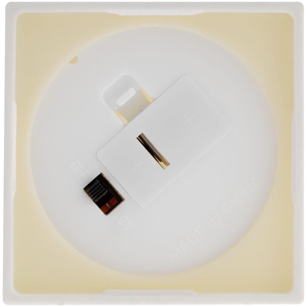 Внутри LED-свеча с теплым светом. Работает от 3 батареек типа LR44 (в комплект не входят).