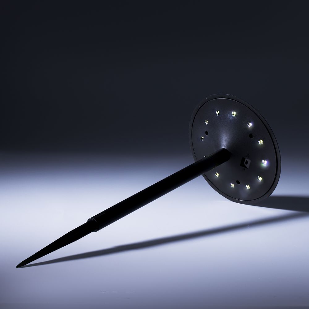 Светильник в лаконичном корпусе прекрасно подходит для освещения садовых дорожек, тропинок и декоративных элементов на газоне. Благодаря конструкции в форме зонтика, свет не бьет по глазам в темноте. Не требует замены батареек или зарядки аккумулятора, так как заряжается от солнечного света, и сложной установки — фонарик достаточно просто воткнуть в землю в любом удобном месте.