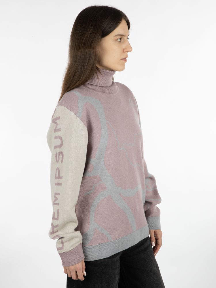 Модель: свитер жаккардовой вязки, плотный и теплый, 2–3 цвета нитей, гладкая поверхность.