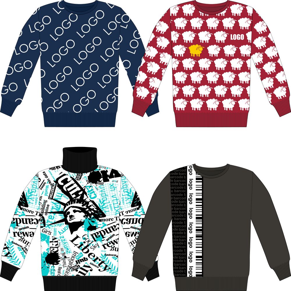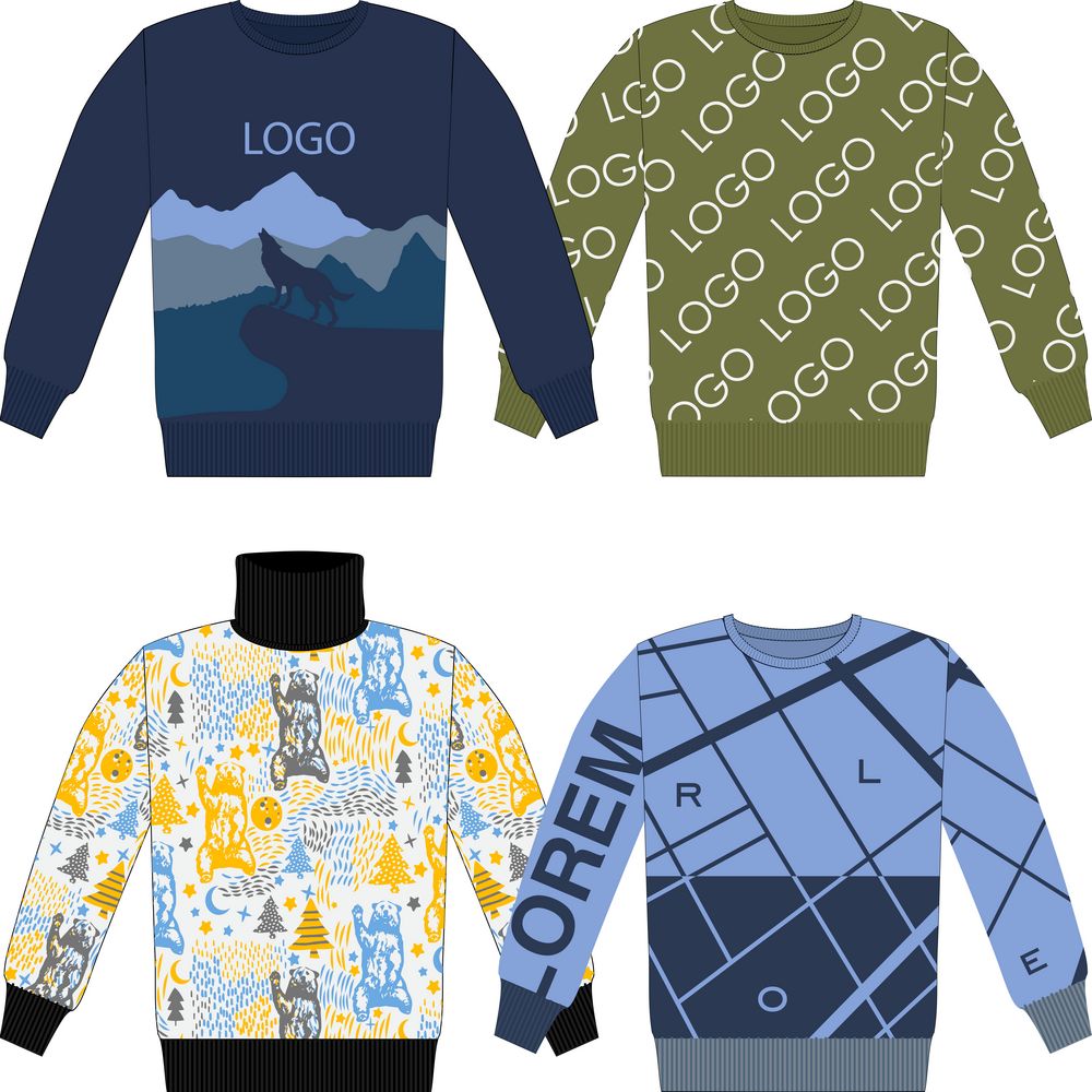 – на однотонных пространствах можно «разделить» полотно (кажется, что свитер двуслойный), поэтому рекомендуется не оставлять больших однотонных площадей.
