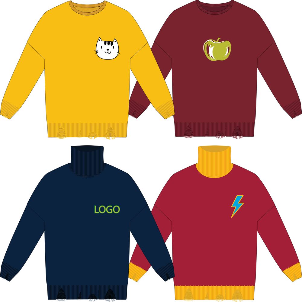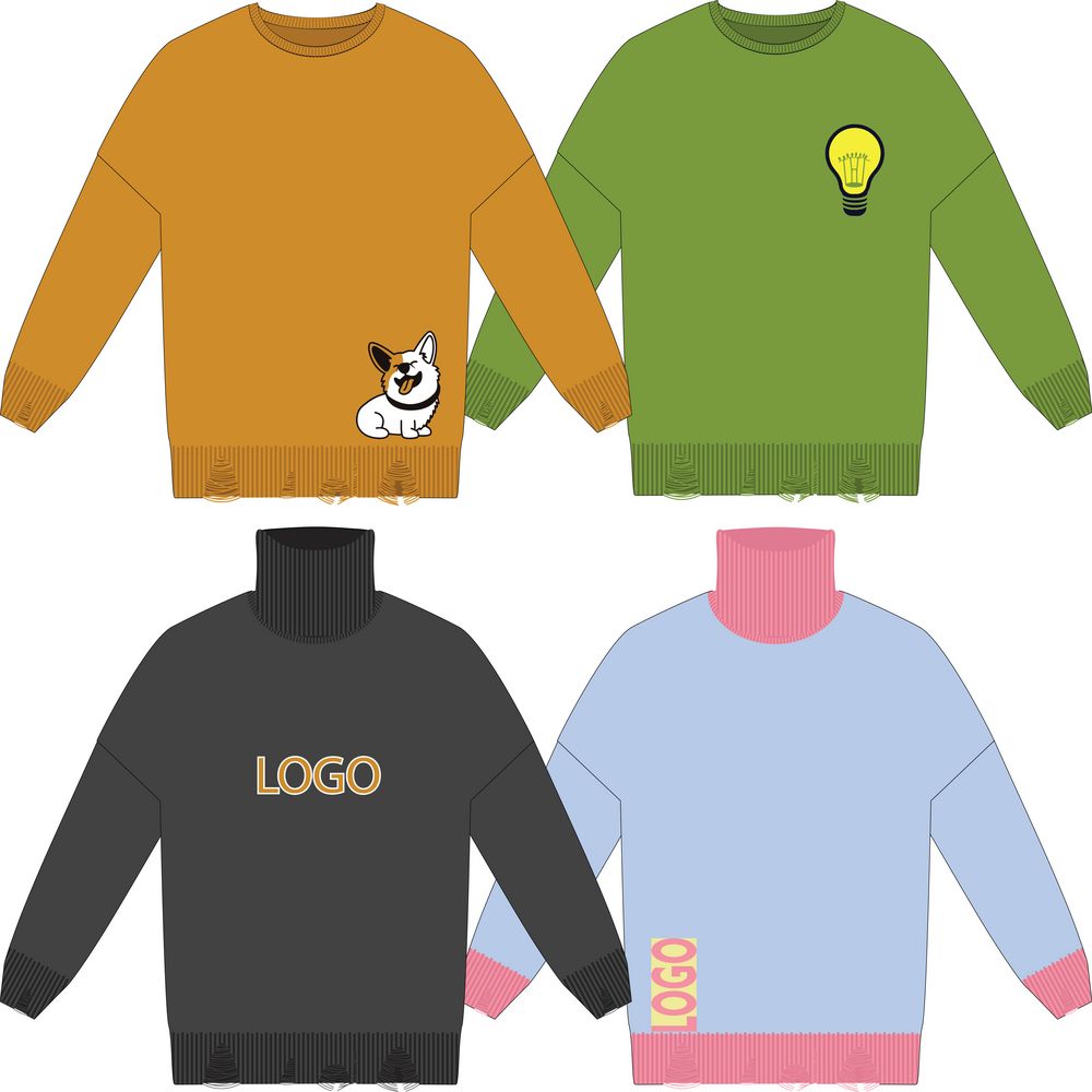 В стоимость входит размещение одного вывязанного логотипа в 2 цвета (без учета основного цвета) площадью до 300 см² на груди или на спинке и возможность выделить другим цветом ворот, манжеты и низ изделия.