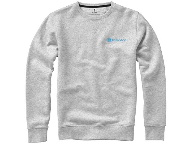 Свитер с круглым вырезом Surrey. Стандартный покрой. Резинка 2х2 на манжетах и поясе. Резинка 2х2 на v - образной вставке по центру спереди. Атласная лента от плеча к плечу. Ворсистый внутри для мягкости, тепла и комфорта. Принт лого сзади в тон изделия. Трикотаж: 80% хлопок и 20% полиэстер, чесаная внутренняя сторона. 300 г/м². Трафаретная печать (1 цвет (цветные изделия)) на данный товар осуществляется бесплатно. Оплачивается только настройка оборудования в размере 10000 рублей на весь тираж.