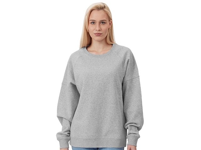 Главная особенность этого свитшота оверсайз — необычный рукав из двух частей: верхней — реглан до середины предплечья — и нижней, которая заканчивается резинкой. Благодаря такому необычному крою свитшот сидит комфортно по фигуре.