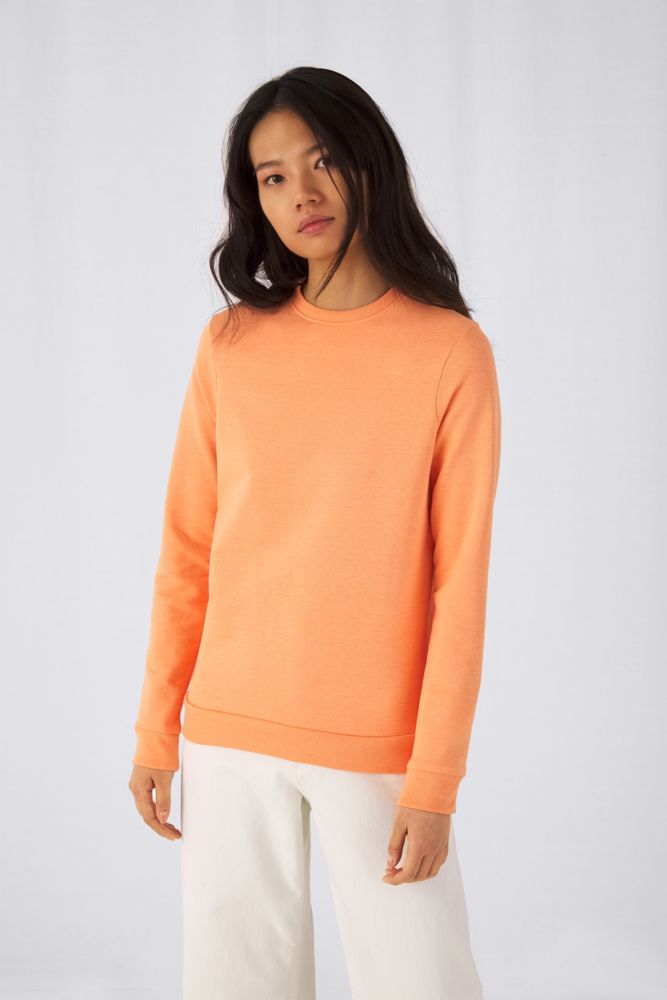 Современный универсальный женский свитшот с круглым вырезом, изготовленный из мягкой ткани, обеспечивающей идеальную поверхность для печати.