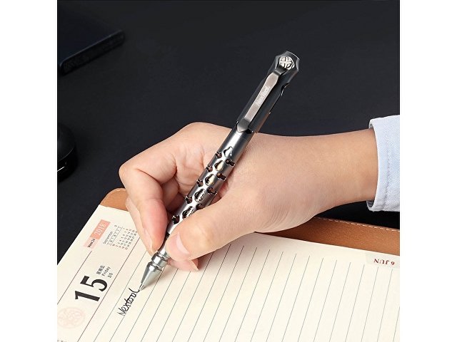 Корпус изделия устойчив ко внешним повреждениям, сколам и царапинам, он не боится воды, грязи и пыли. Примечательно, что подобного рода алюминий используется в аэрокосмической промышленности. Корпус ручки разделен на 2 части, плотно скрепленных между собой специальной резьбой. Перо данного изделия изготовлено из высокопрочной нано-керамики.