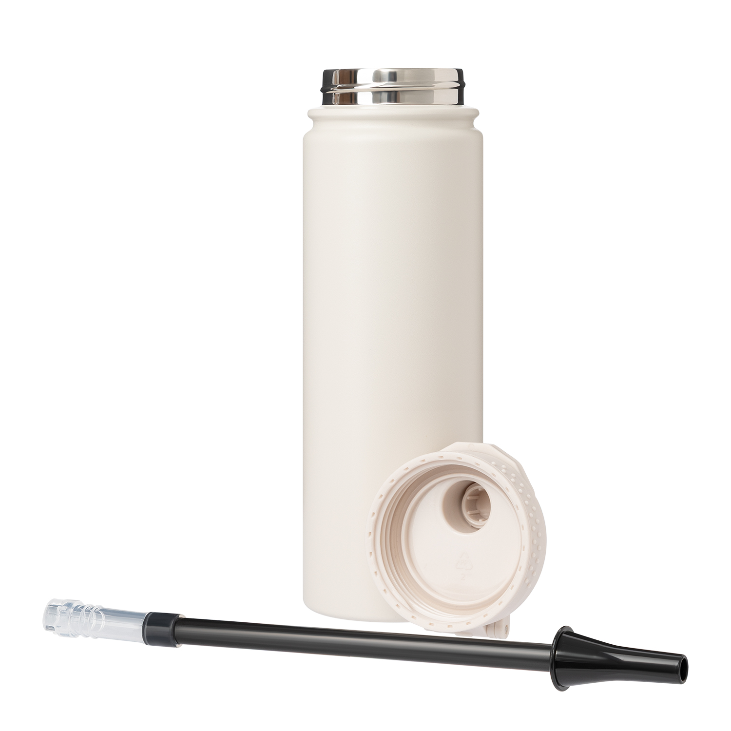 Бутылка оснащена съемной трубочкой. Удобная ручка на крышке облегчает переноску и позволяет прикрепить термобутылку к рюкзаку или сумке.