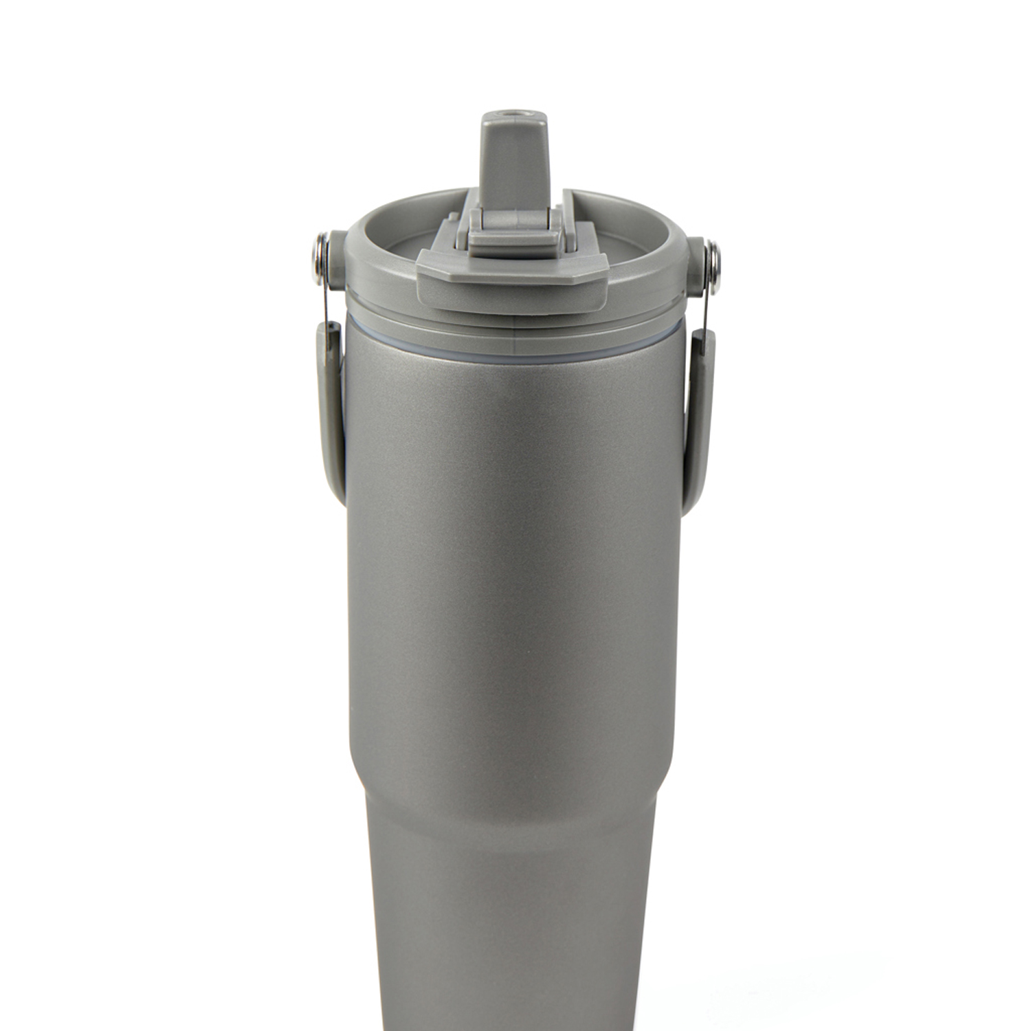 Термобутылка Eos Trek выполнена в современном дизайне, который объединил функциональность и стиль. Большой объем 880 миллилитров поможет утолить жажду в течение всего дня. Для удобства переноски бутылка оснащена удобной ручкой. Оригинальный дизайн крышки не только не даст напитку пролиться, но и позволяет пить так, как вам удобно: носик открывается в двух положениях. Двойные стенки из нержавеющей стали сохраняют напиток холодным до 16 и горячим — до 3 часов. Это идеальный подарок для тех, кто ведет активный образ жизни, занимается спортом и часто отправляется в поездки и командировки. Благодаря широкому горлышку вы легко помоете бутылку, главное — помнить, что она не подходит для мытья в посудомоечной машине. Содержание переработанных материалов составляет 65% от общего веса изделия. Сертифицировано RCS. Эта сертификация полностью контролирует путь поставок переработанных материалов и гарантирует их наличие в изделии.