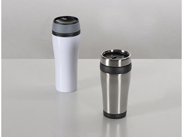 Герметичный термостакан Curve. Стакан для питья с двойными стенками с поворотной крышкой, позволяющая пить с любой стороны. Объем – 400 мл. Тампопечать (1 цвет (белые изделия)) на данный товар осуществляется бесплатно. Оплачивается только настройка оборудования в размере 4500 рублей на весь тираж.