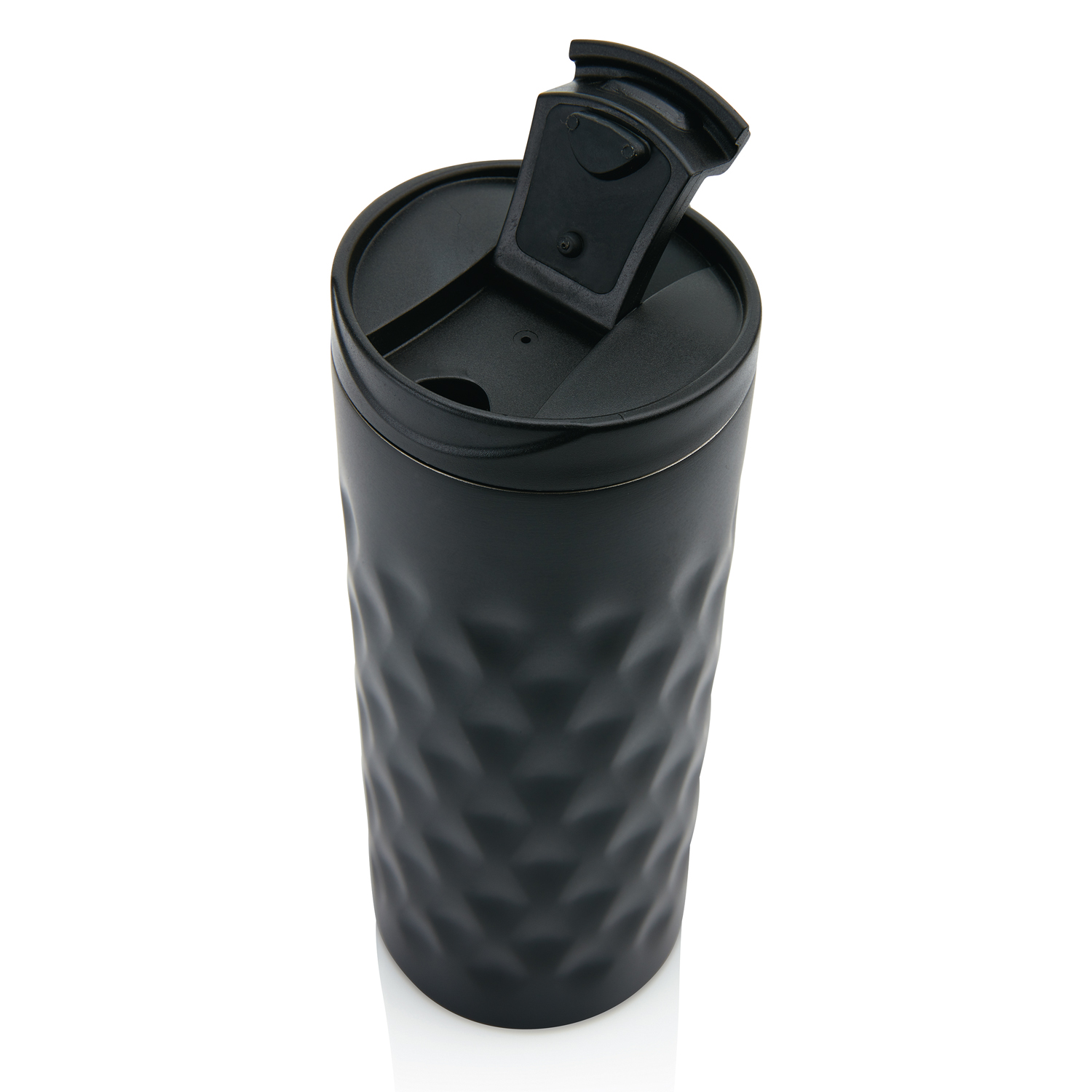 Герметичная термокружка с двойными стенками, изготовленная из нержавеющей стали, выделяется своим оригинальным дизайном, основанным на строгой геометрии форм. Объем кружки 350 мл.