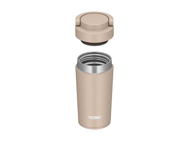 Термоизоляция защищает корпус от нагрева при хранении горячих напитков и от появления конденсата от холодных. Поэтому термостакан безопасно держать в руках и ставить на любые поверхности. Современный стиль термостакану придаёт эргономичная форма и покрытие песочного цвета, отличающегося износостойкостью. Компактный термостакан совместим с большинством кофемашин и подходит для размещения в автомобильном подстаканнике.