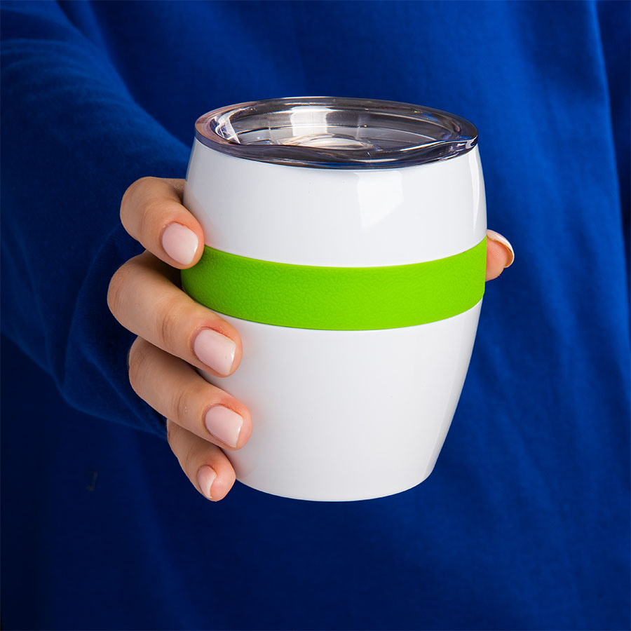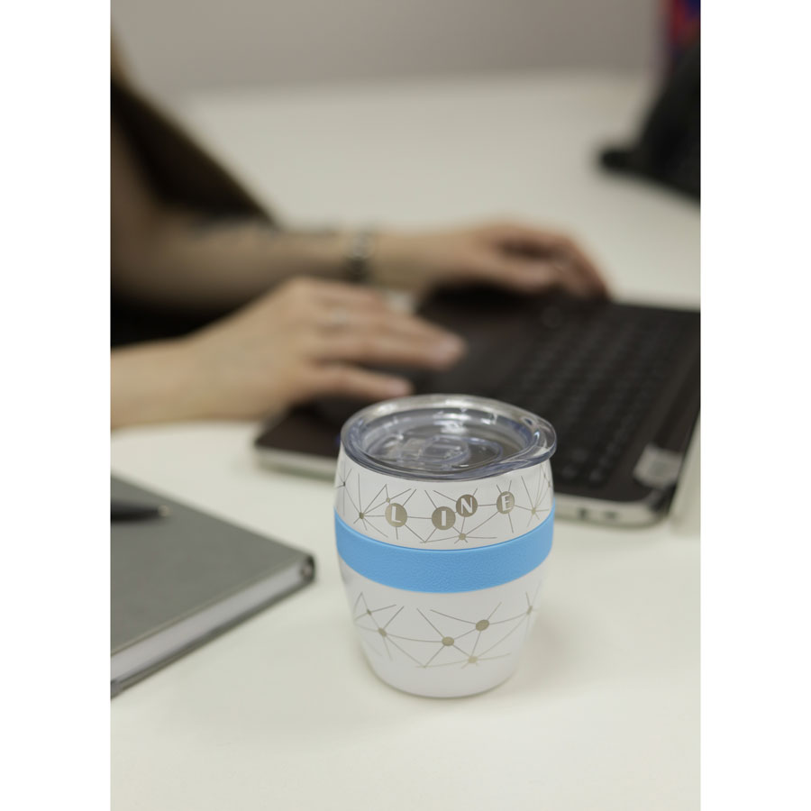 Термокружка LINE с двойными стальными стенками сохранит напиток горячим до 3х часов, холодным - до 4х часов.