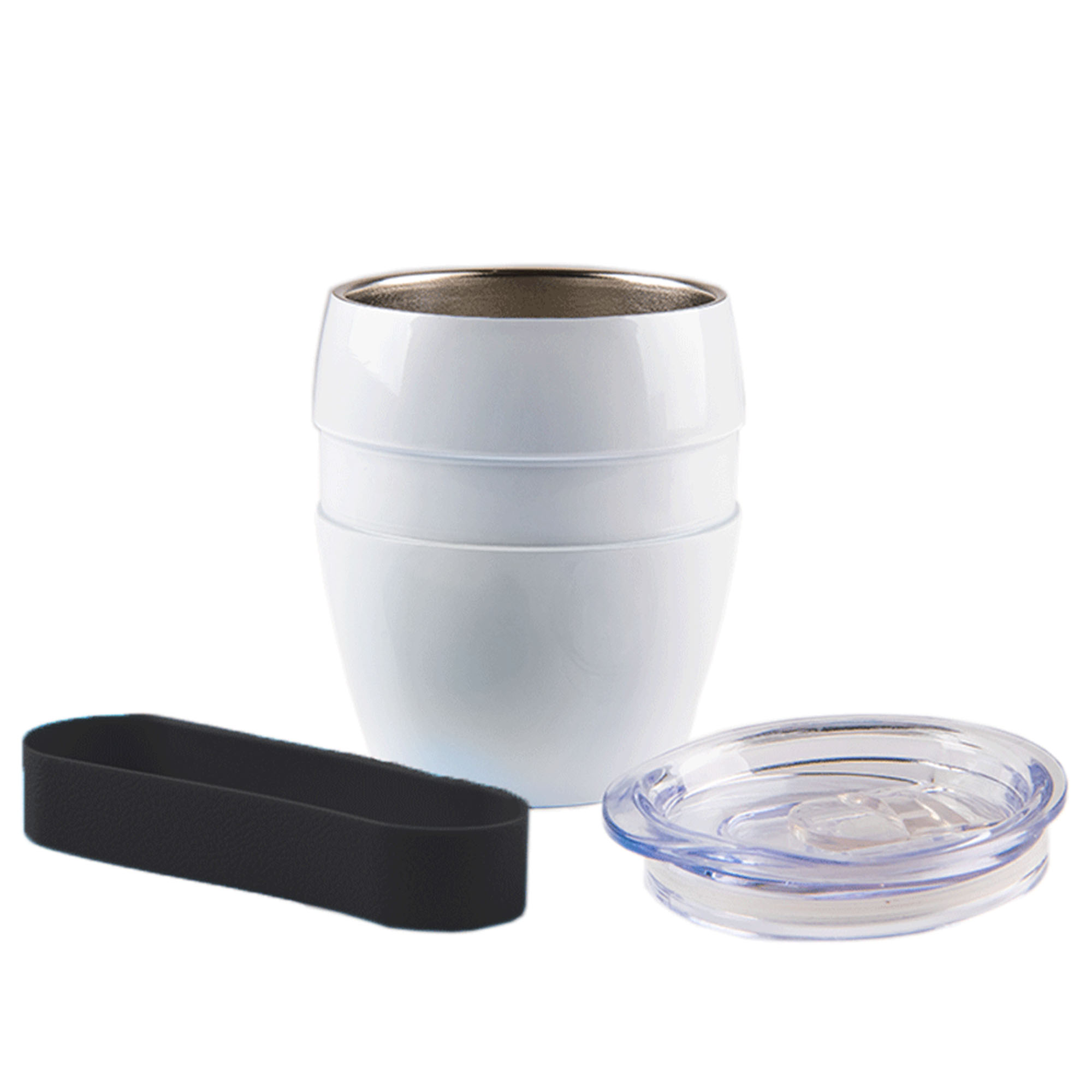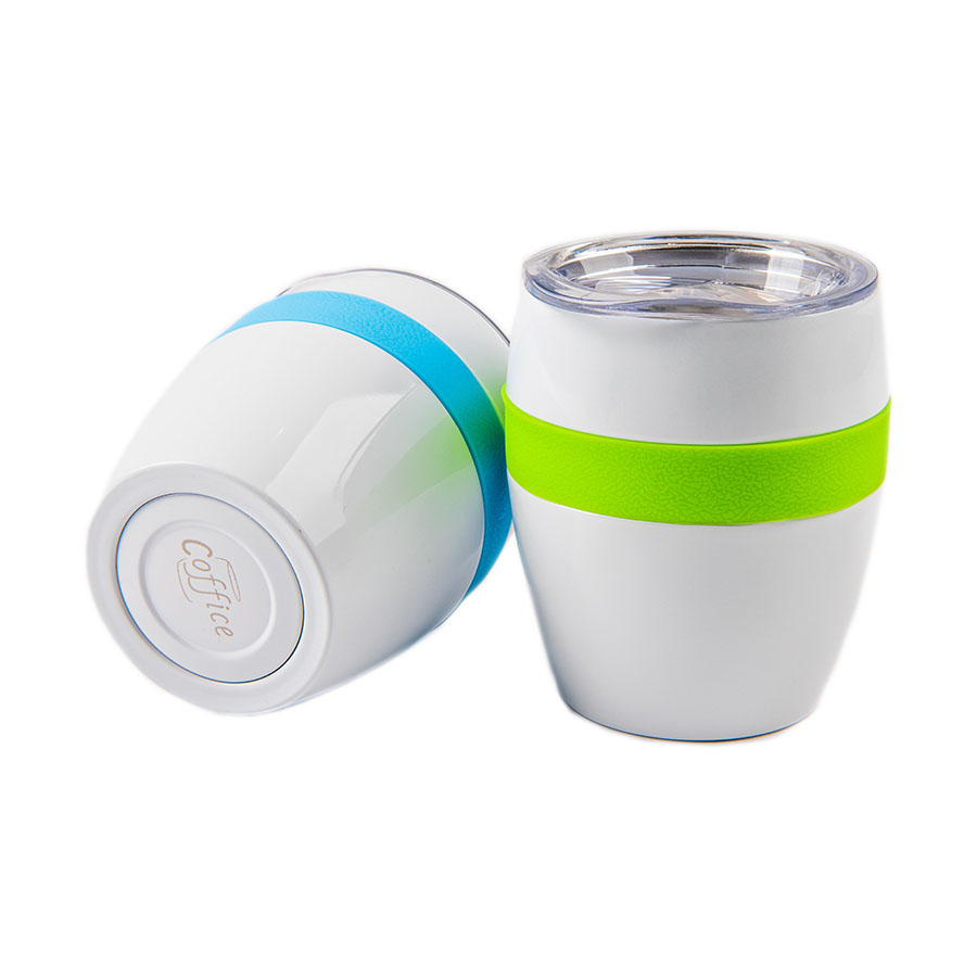 Благодаря форме удачно лежит в руке, и за счет резинового браслета не скользит. Высота без крышки 9,7 см, подходит для большинства кофемашин.