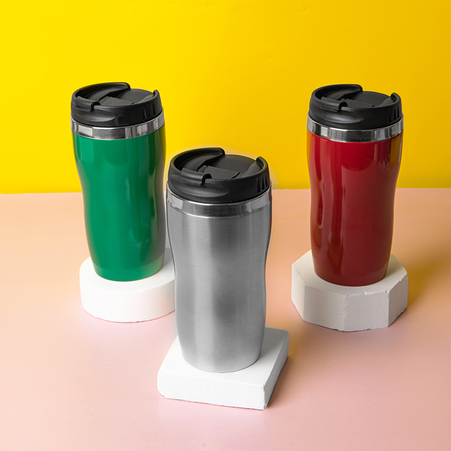 Термокружка с двойными стенками из стали марки 304, с откидным клапаном для питья. Колба из нержавеющей стали.С внешней стороны глянцевое покрытие. Идеальный продукт для промоакций. Сохраняет температуру напитков до 3 часов.Индивидуальная упаковка - коробка из белого картона