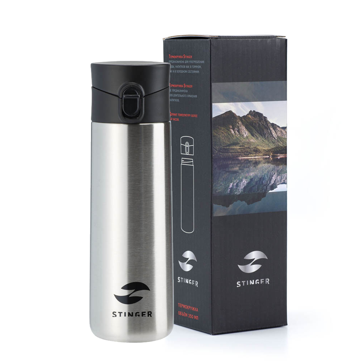 Термокружка Stinger, 0,35 л, сталь/пластик, серебристый, 6,6 x 6,4 x 20,3 см