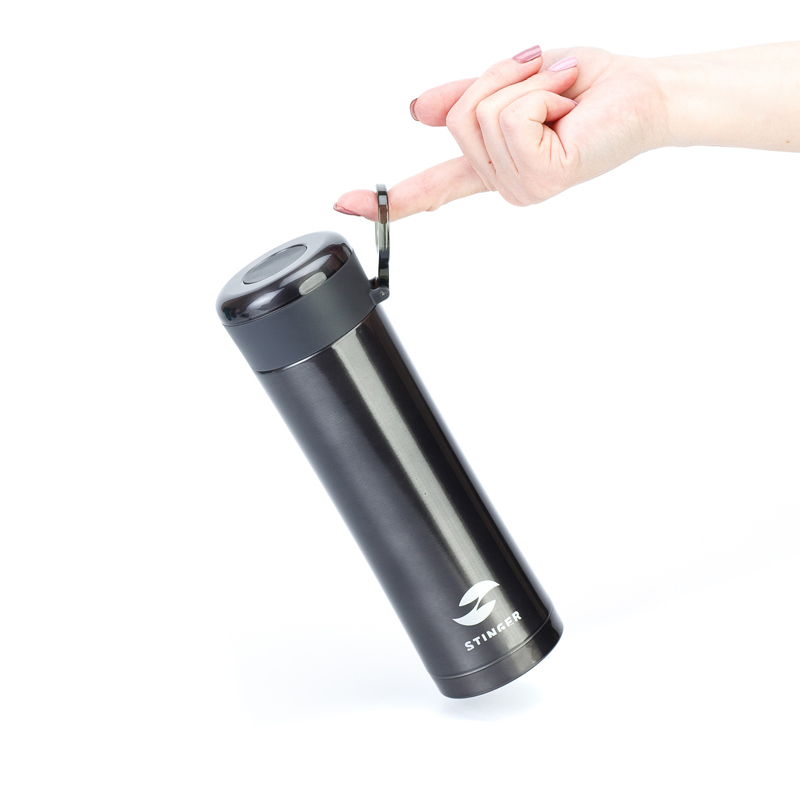 Термокружка Stinger, 0,42 л, сталь/пластик, чёрный глянцевый, 7,5 х 6,9 х 22,2 см