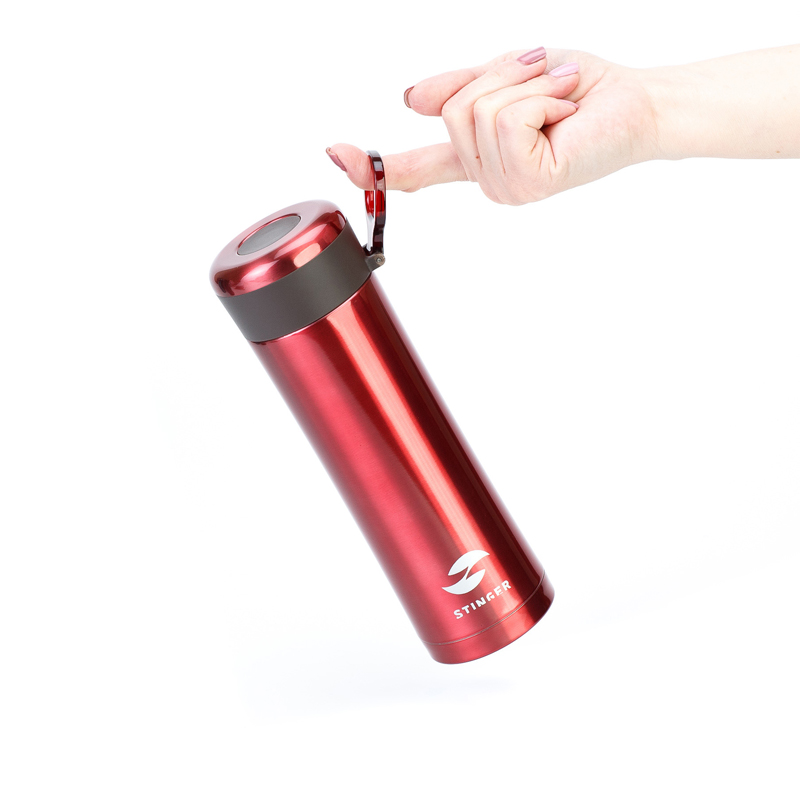 Термокружка Stinger, 0,42 л, сталь/пластик, красный глянцевый, 7,5 х 6,9 х 22,2 см