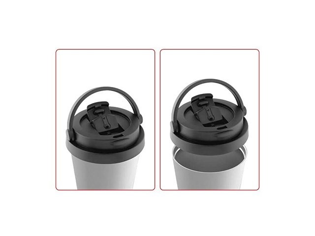 Термоизоляция не позволяет нагреваться корпусу кружки от горячих напитков, на нём не образуется конденсат от холодных. Поэтому термостакан безопасно держать в руках и ставить на любые поверхности. Такой термопосуде не нужна традиционная ручка, но для удобства переноски предусмотрена ручка на крышке. В сложенном виде она интегрируется в плоскость крышки, плотно фиксируется за счет специального выступа и не мешает при питье. В процессе выпивания напитка крышку можно не снимать – в её конструкции предусмотрен откидной клапан, который легко открывается и закрывается одной рукой. Он защищает напиток от попадания пыли внутрь, а также минимизирует влияние температуры окружающей среды, способствуя сохранению напитка горячим или холодным длительное время. В положении открыто клапан плотно фиксируется в плоскости крышки и не опрокидывается при питье. В крышке предусмотрены два отверстия – питьевое и воздушное для обеспечения плавного потока жидкости.