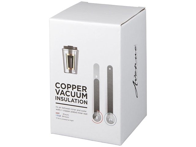 Герметичная медная вакуумная термокружка Thor объемом 360 мл. Двустенная вакуумная конструкция из нержавеющей стали с медной изоляцией позволит вашему напитку оставаться холодным в течение 24 часов и горячим - как минимум 8 часов. Кроме того, конструкция препятствует образованию конденсата на внешней стороне термокружки. Закручивающаяся герметичная крышка. Современное, долговечное покрытие из порошкового материала. Объем - 360 мл. Упакована в подарочной коробке Avenue. Нержавеющая сталь. Гравировка (CO2 лазер) (Без чернения) на данный товар осуществляется бесплатно. Оплачивается только настройка оборудования в размере 1100 рублей на весь тираж.