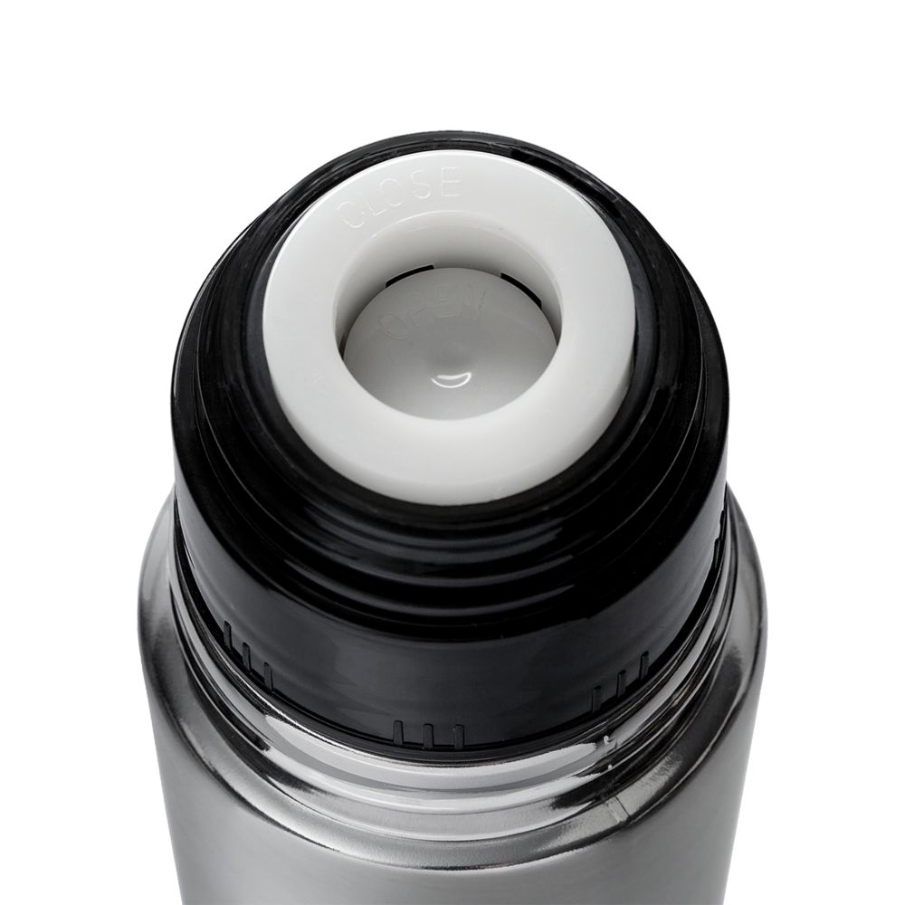 Двухслойная вакуумная конструкция из нержавеющей стали внутри и снаружи с завинчивающейся пробкой с клапаном.