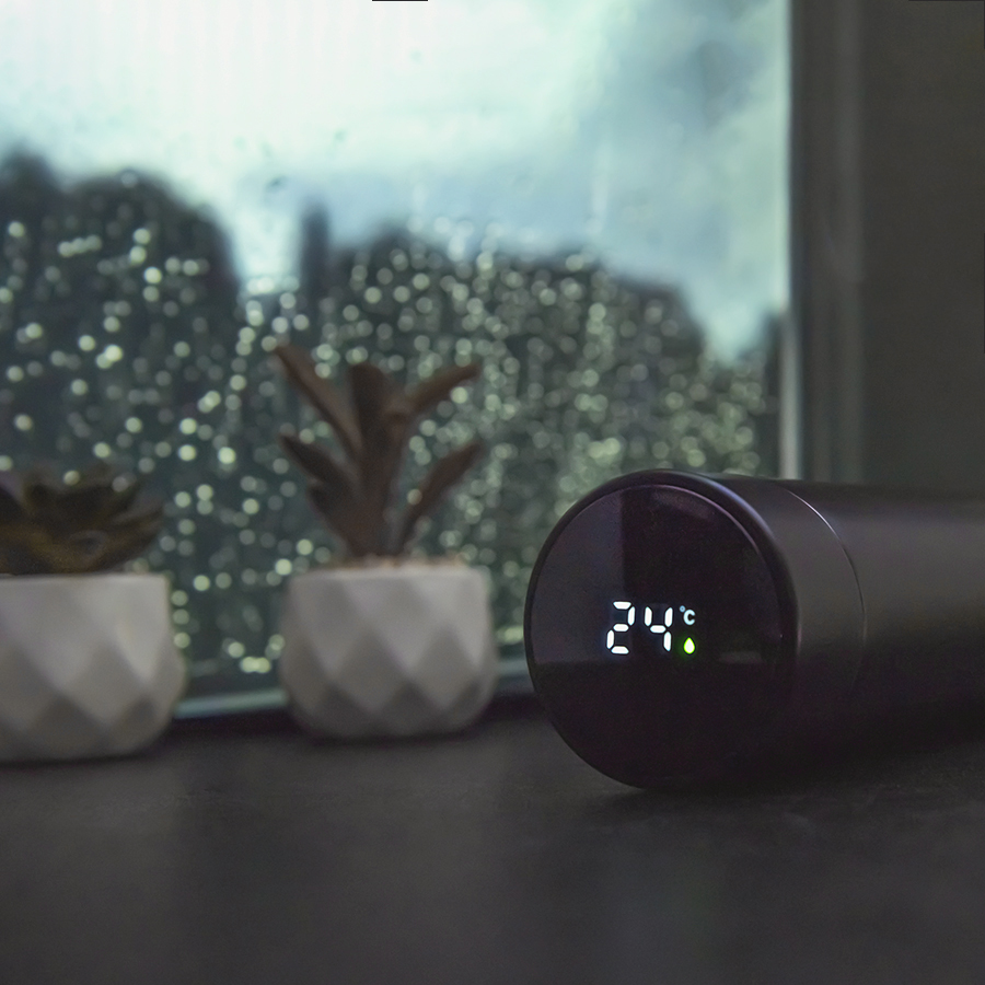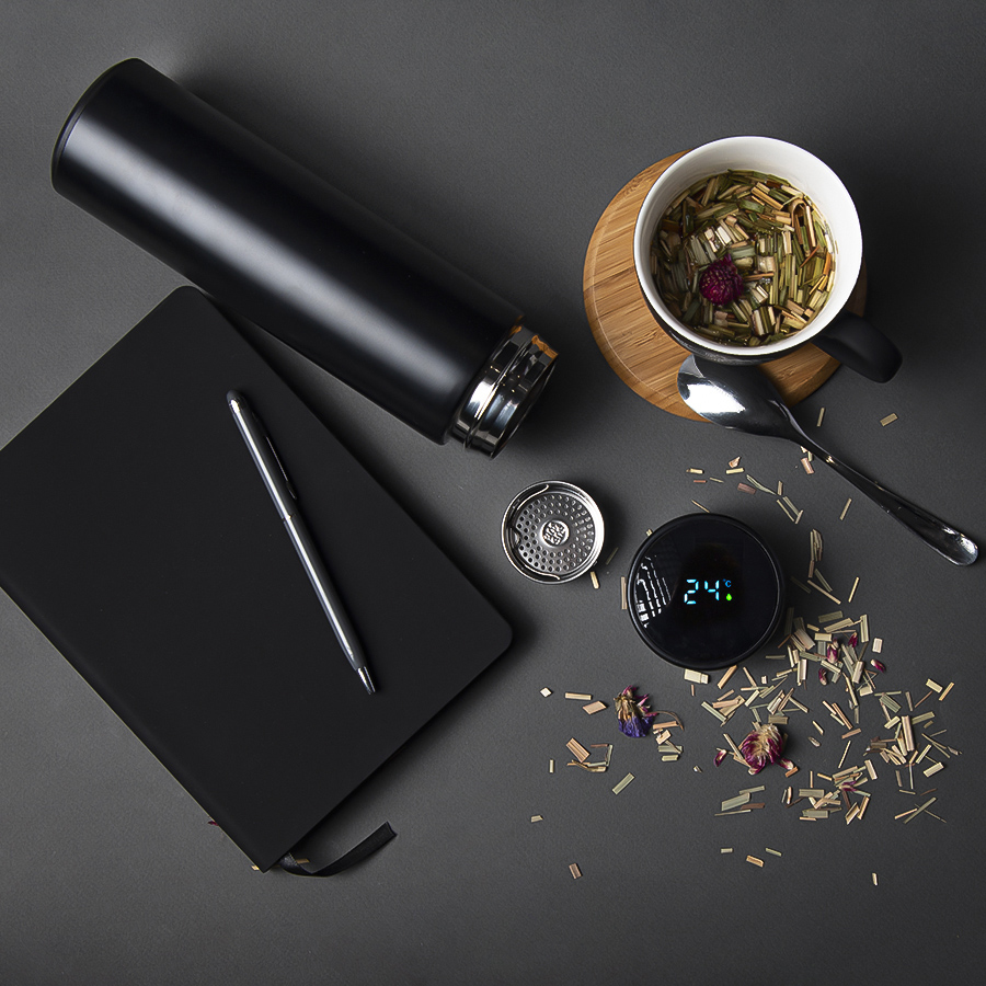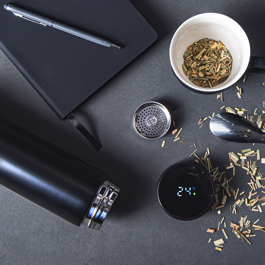 Вакуумный термос надолго сохранит температуру вашего напитка, а электронный термометр, расположенный на крышке, подскажет точную температуру его содержимого. Термос имеет навинчивающуюся крышечку и ситечко.Работает от встроенных батареек в крышке, батарейки не съемные. Расчетное время работы 1000 дней, либо 80000 нажатий.Для активации табло и просмотра температуры необходимо нажать на крышку термоса