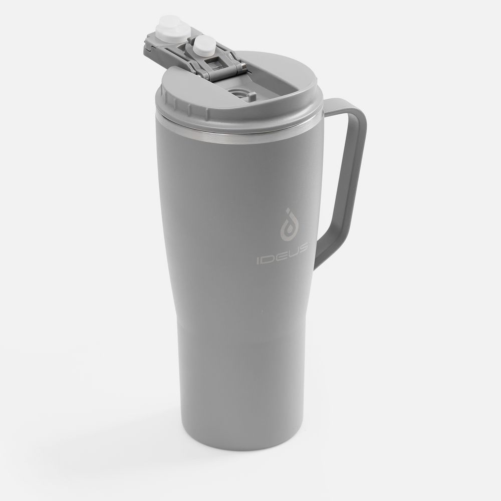 - 2 крышки в комплекте: одна на 100% герметичная с механизмом блокировки отверстия для питья, вторая — с отверстием для трубочки