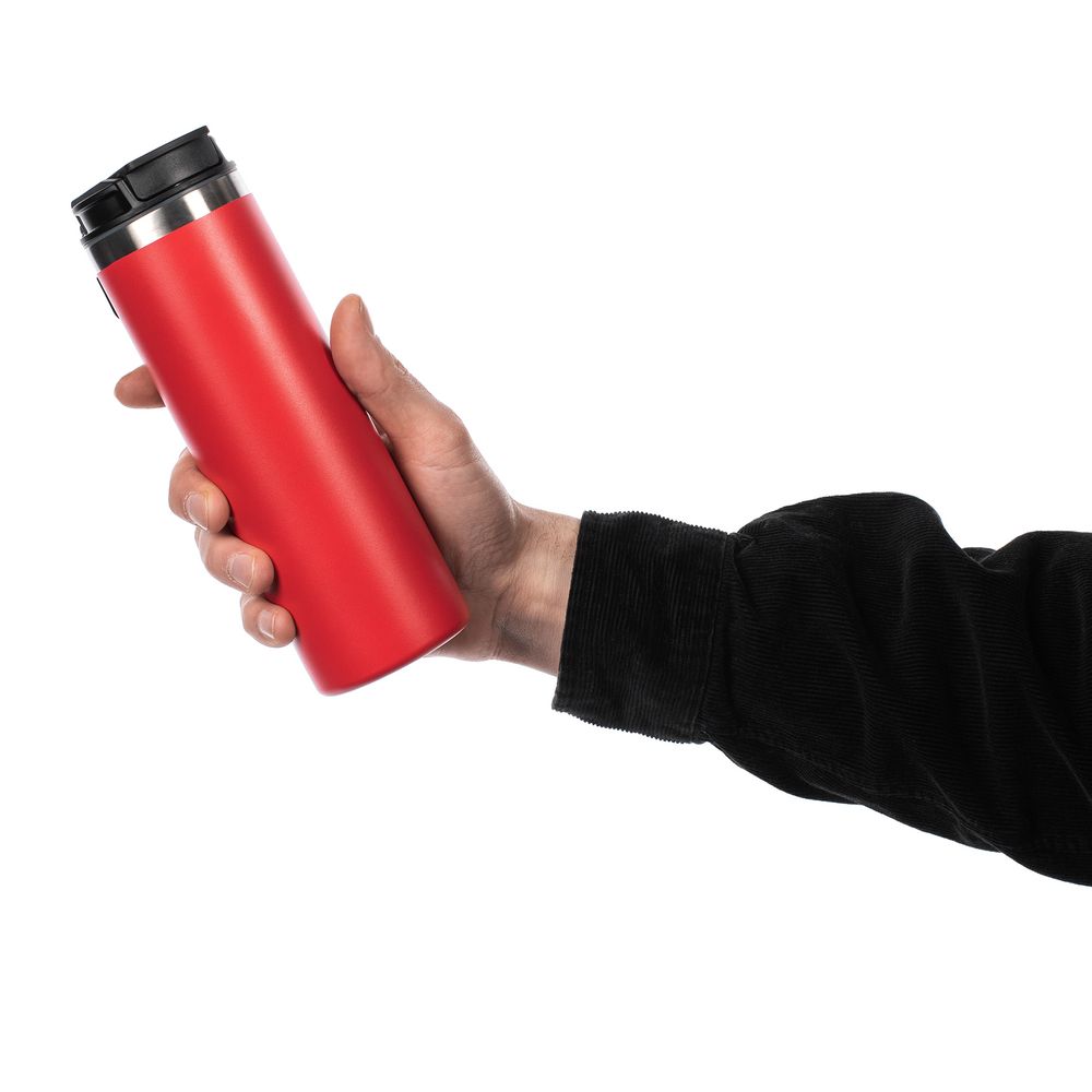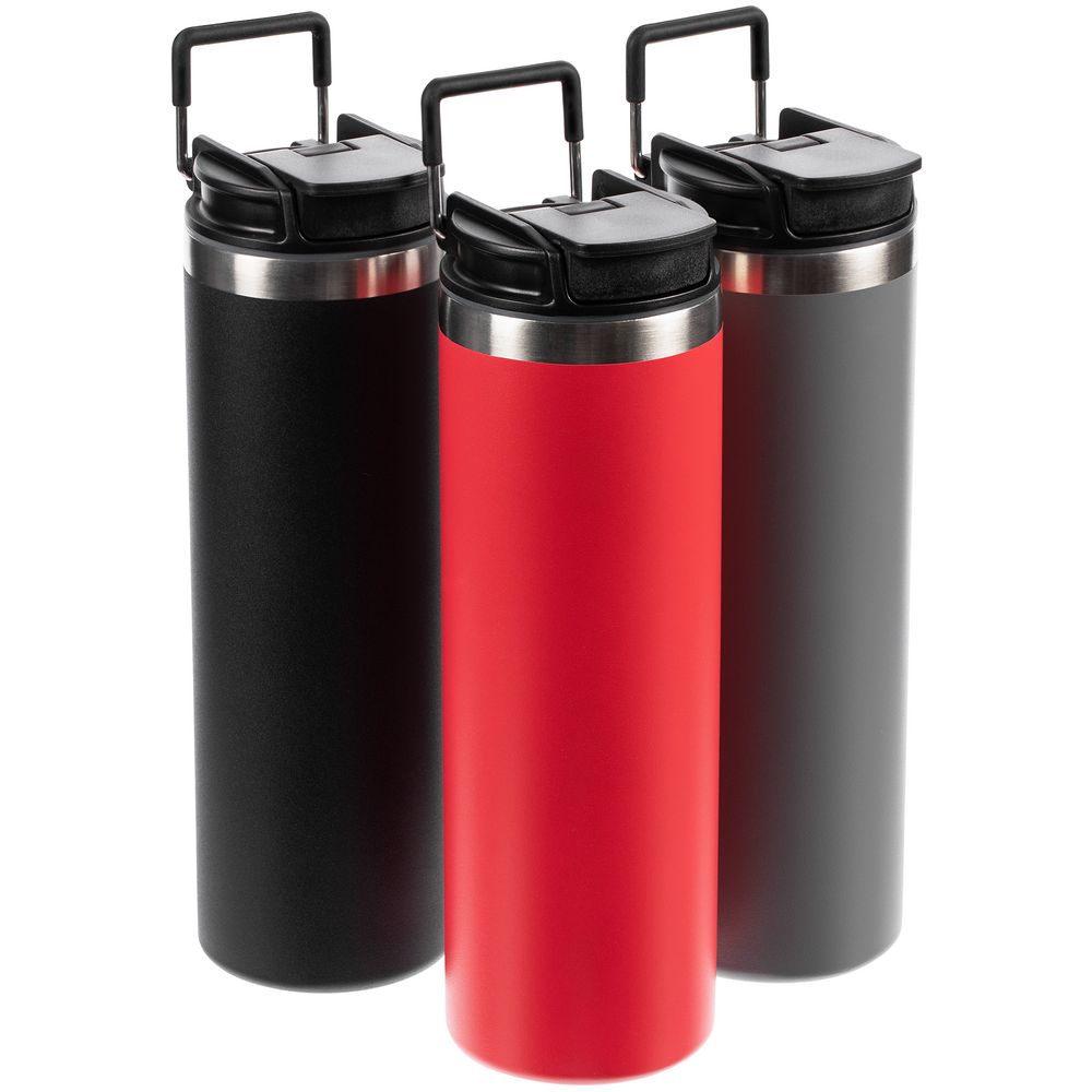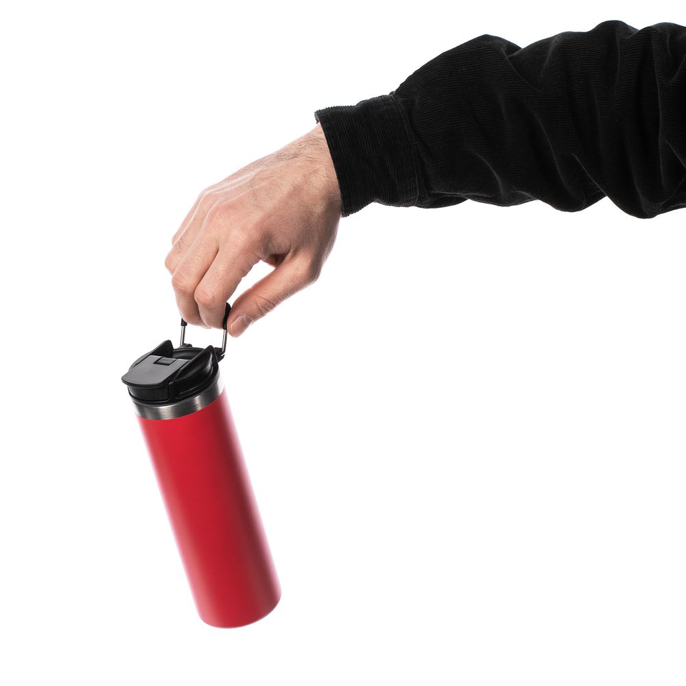 Лаконичный дизайн с ровным циллиндрическим корпусом (специально для круговой печати и гравировки), достаточный объем и привлекательная деталь в виде подвижной квадратной ручки для переноски.