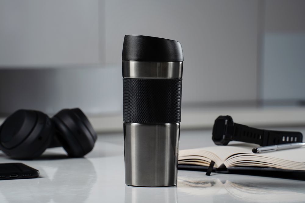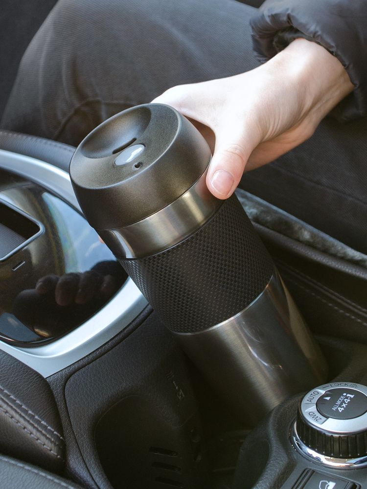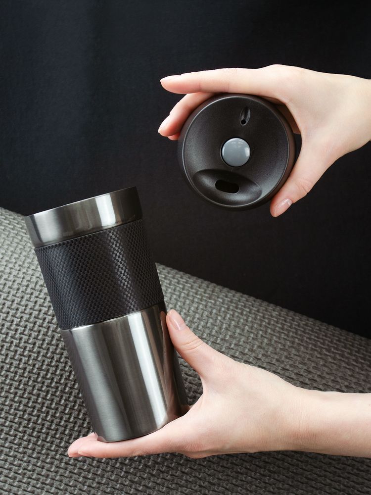Двухслойная вакуумная конструкция из нержавеющей стали внутри и снаружи. Герметичная завинчивающаяся крышка с нажимным клапаном для питья.