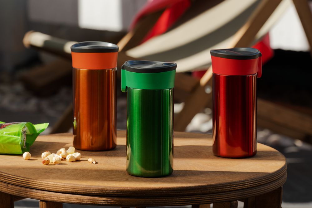 - Двухслойная вакуумная конструкция из нержавеющей стали сохраняет напиток горячим не менее 3 часов, холодным — не менее 5 часов.