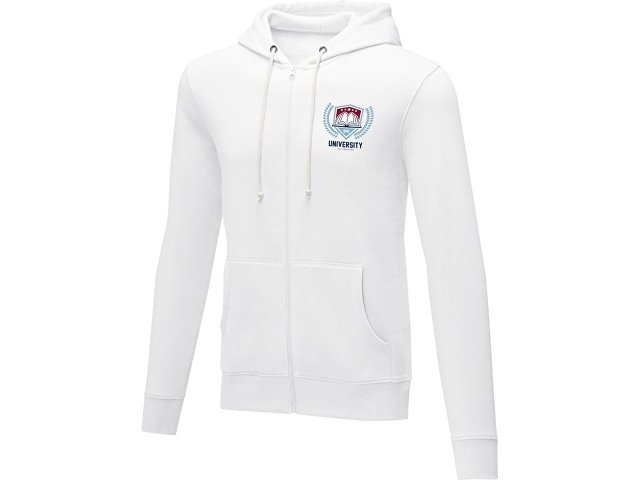 Мужская толстовка на молнии Theron. Основная этикетка, которую можно оторвать или отрезать, без неудобных пришитых ярлыков. Завязки на капюшоне. Расположенная по центру молния. Карман кенгуру. С подшивкой из гладкого трикотажа в рубчик. С манжетами из гладкого трикотажа в рубчик. Внутренняя сторона покрыта ворсом. Тесьма из основного материала по внутренней стороне горловины. Трикотаж 50% Хлопок, 50% Полиэстер, 240 g/m2. Трафаретная печать (1 цвет (белые изделия)) на данный товар осуществляется бесплатно. Оплачивается только настройка оборудования в размере 8200 рублей на весь тираж.
