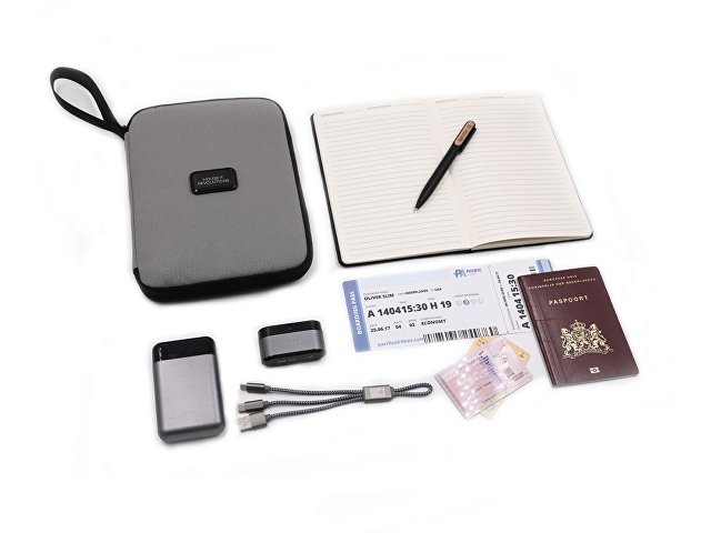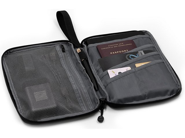 Хороший корпоративный подарок для путешествующих, снабженный многими функциями. Кроме путешествий портмоне можно использовать для хранение карт и документов дома. Выполнен из водостойкого и долговечного переработанного полиэстера с покрытием от загрязнения. Внутреннее отделение вмещает документы формата А5, iPad mini, электронную книгу.