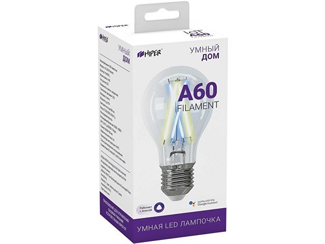Умная LED лампочка Wi-Fi HIPER IoT A60 Filament, поддерживает удаленное управление через приложение HIPER IoT, предназначена для использования в уже установленных люстрах и светильниках, наделяя их дополнительными функционалом. Полностью имитирует лампу накаливания, сочетая в себе достоинства ламп накаливания и экономичность LED ламп.