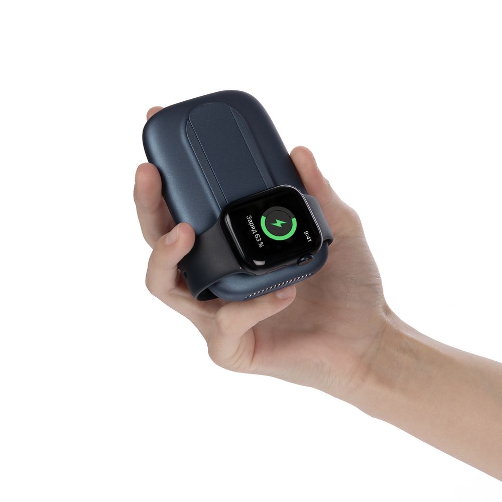 Компактный аккумулятор с функцией беспроводной зарядки и магнитной фиксацией к задней крышке iPhone 12–15. В устройстве предусмотрена также функция заряда Apple Watch 2–8. Эргономичная форма, датчик приближения для автоматического старта заряда и эффективная система охлаждения повышают комфорт повседневного использования.