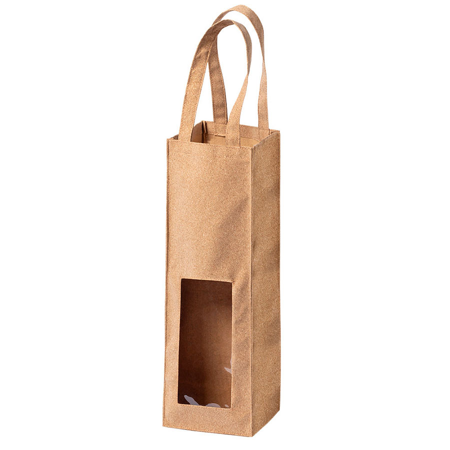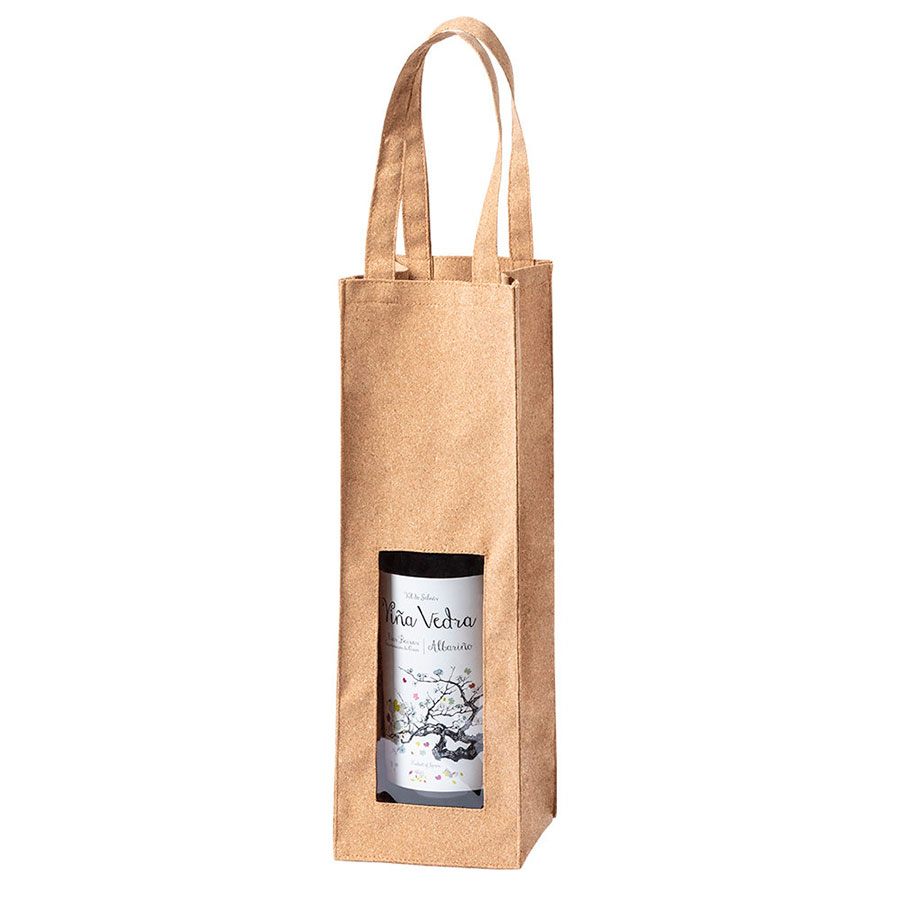 Упаковка для одной бутылки с окном и ручками, изготовлена из пробкового дерева Индивидуальная упаковка - ПЭ пакет