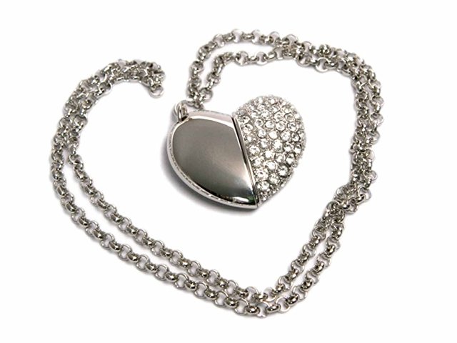 Флеш-накопитель в виде Сердца с кристаллами , объем памяти 64 ГБ. Металлический корпус.