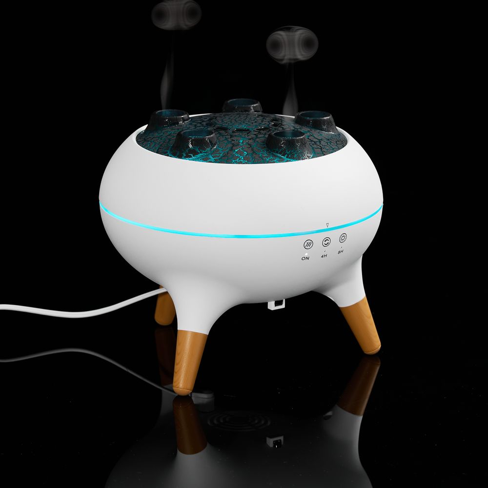 Помимо стандартных струек пара посередине крышки Cloudini, умеет выпускать маленькие облачка влажного воздуха из 5 отверстий по окружности поочередно или динамически — в такт музыке. Устройство реагирует на звуковые колебания и выстраивает интенсивность распыления в зависимости от мелодии.