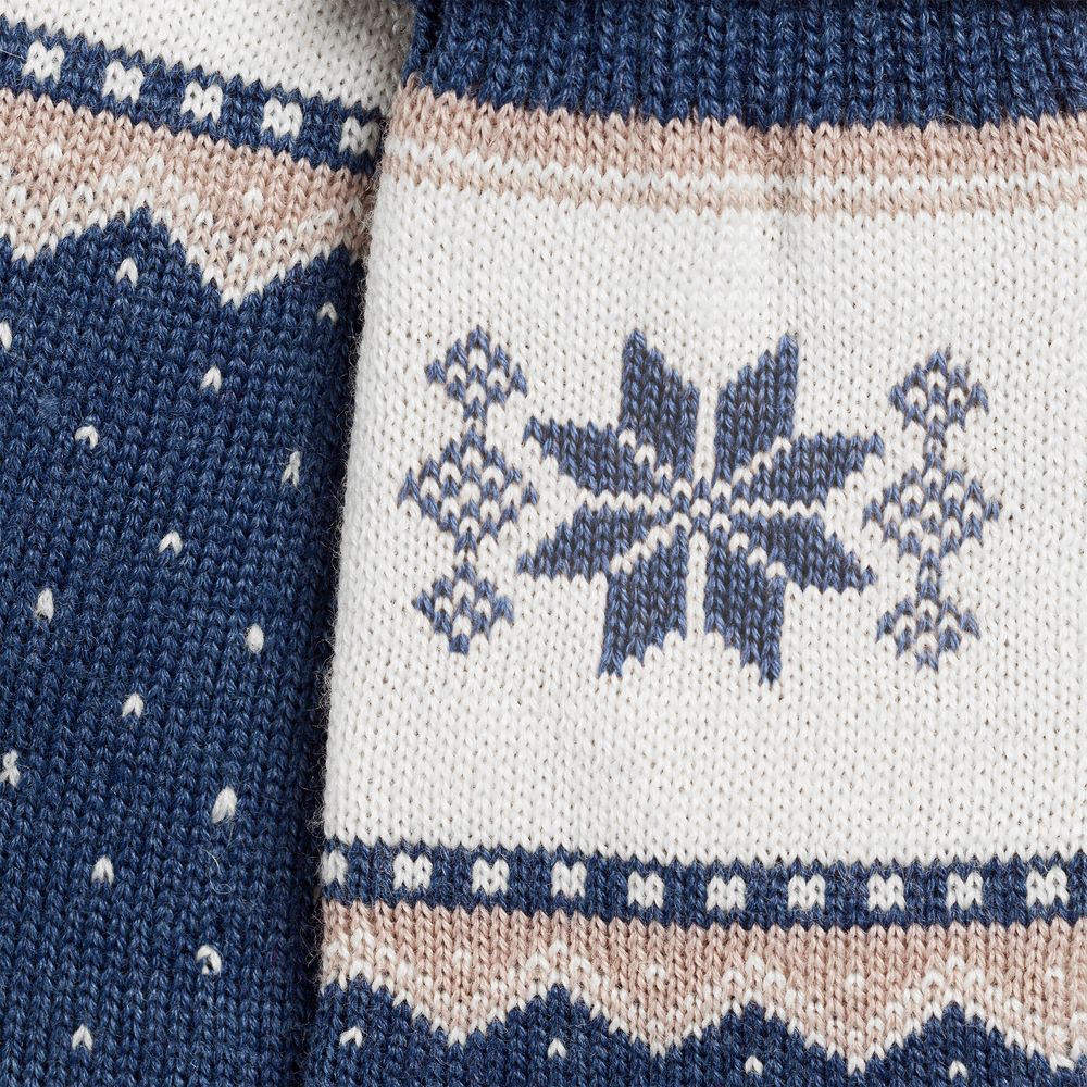 Модель: без подклада, с жаккардовым узором в 2-3 цвета, манжета с отворотом. Узор простой и графичный, без сложных мелких деталей. Узор необходимо размещать участками по 2 цвета. Сразу в три цвета возможно вывязать только небольшие участки.