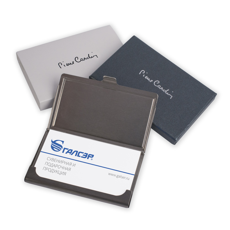 Визитница Pierre Cardin. Корпус - металл, иск.кожа. Размер 9,3 х 6,0 х 0,8 см. Цвет - синий.
