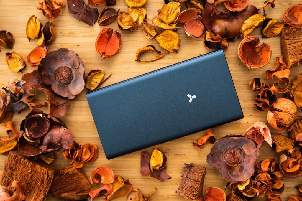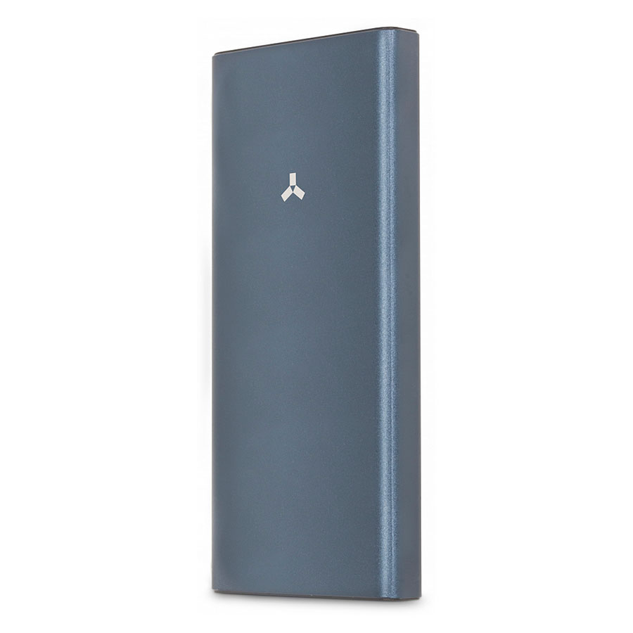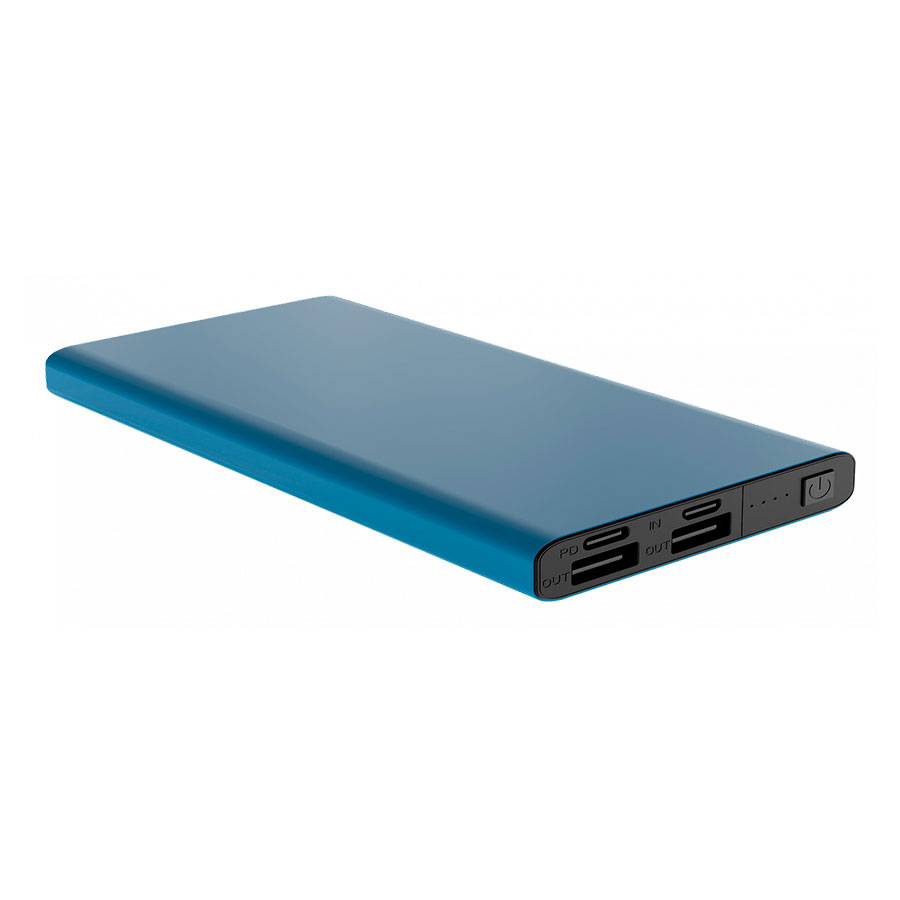 Несмотря на алюминиевый корпус толщина пауэрбанка менее 1,5 см, а вес всего 215 граммов. Износоустойчивый материал насыщенного синего цвета приятен на ощупь и не склонен к механическим повреждениям.