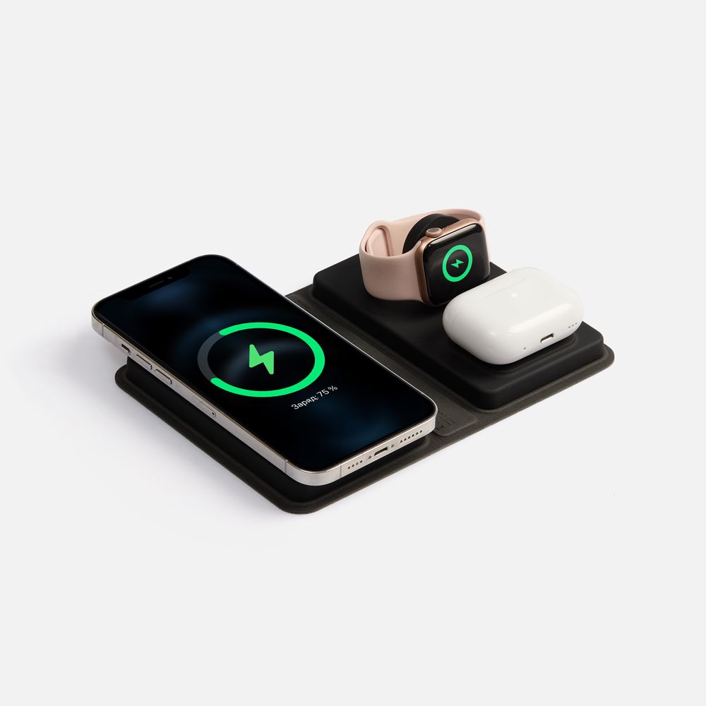 reCover совместим со всеми смартфонами, поддерживающими технологию беспроводной зарядки Qi. Также предусмотрено место для зарядки часов Apple Watch и наушников. Зарядка начнется автоматически при размещении устройств на индукционной площадке.
