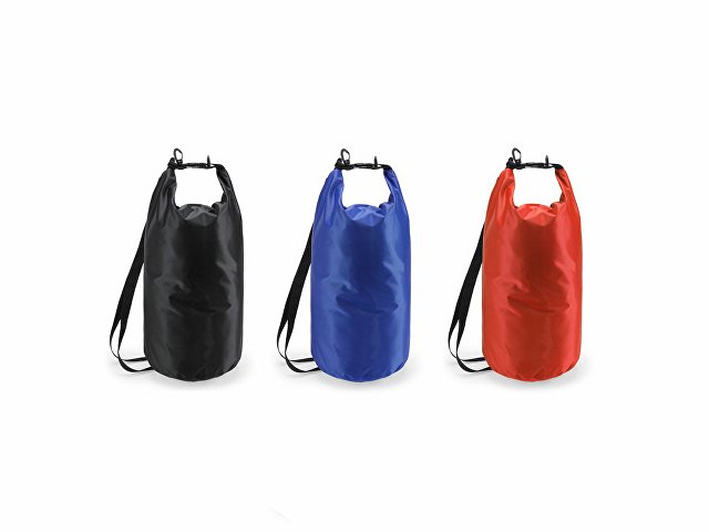 Водонепроницаемая сумка из прочного рипстопа. Карабин и регулируемый плечевой ремень для транспортировки. Общий объем: 15 л. Полезный объем: 10 л.