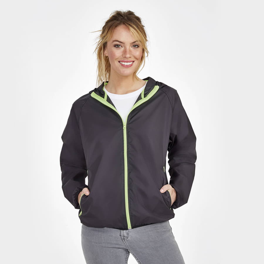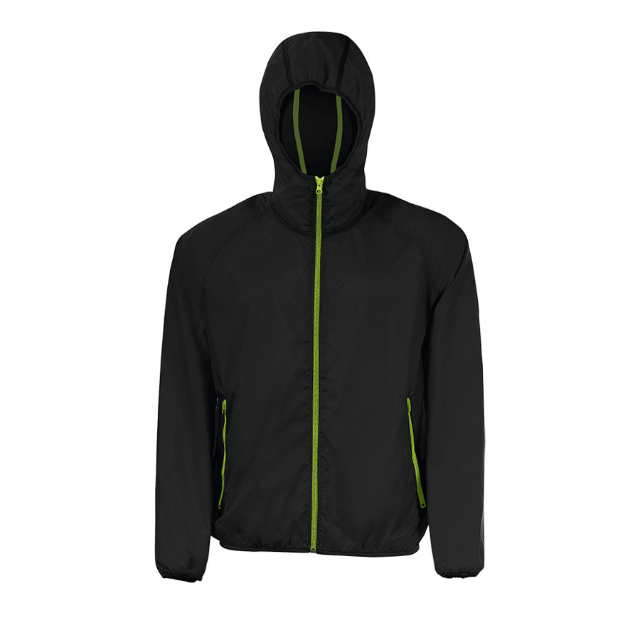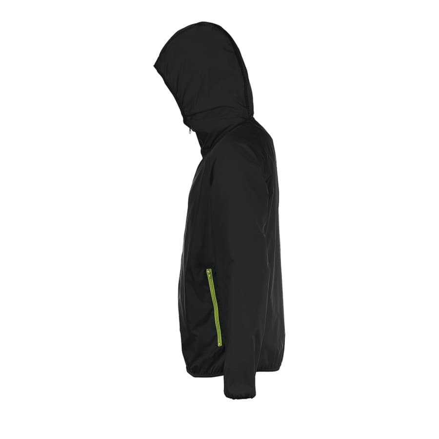 Легкая и компактная ветровка унисекс SHORE из водоотталкивающего и ветрозащитного материала. Два боковых кармана на молнии. Рукава реглан. Манжеты, капюшон и низ ветровки на эластичной тесьме. Молнии ветровки контрастного цвета. Складывается ветровка в свой карман на молнии. Цвет близкий к PANTONE 426C