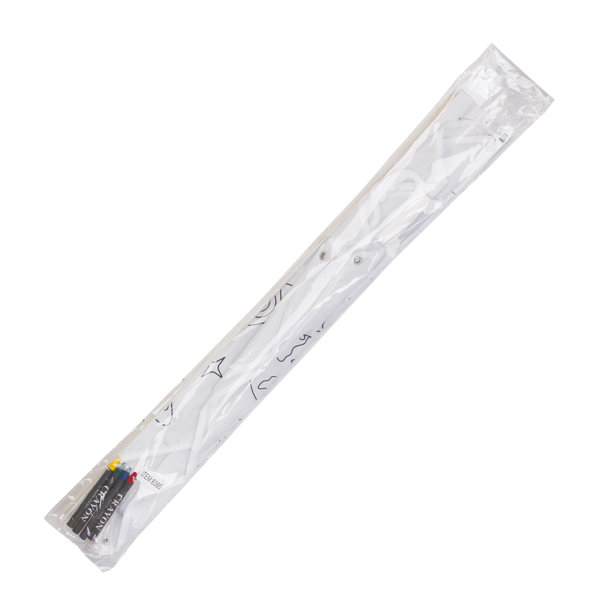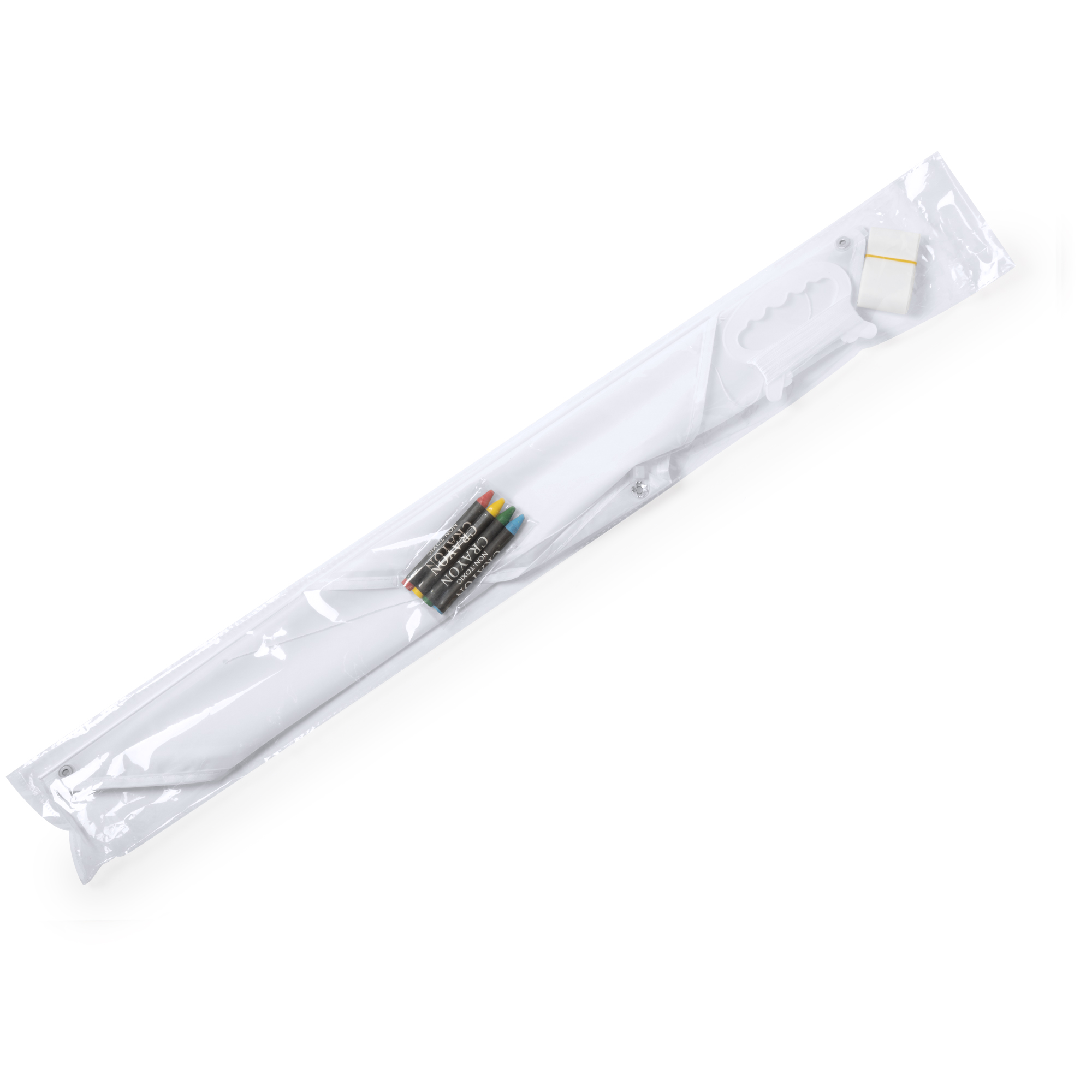 Игра-раскраска поставляется с восковыми мелками (синий, зеленый, желтый, красный).