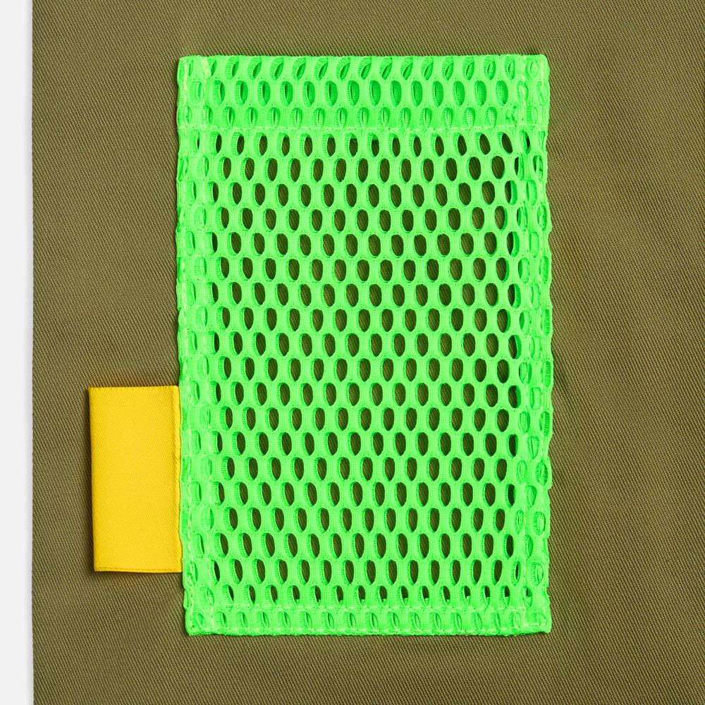 Крупная тканевая сетка Rete — это вызов стандартам. Она сразу заявляет о себе: объемная, просвечивающая, смелая. Такой материал невозможно не заметить — он придает изделию объем, брутальность и футуристичную эстетику.