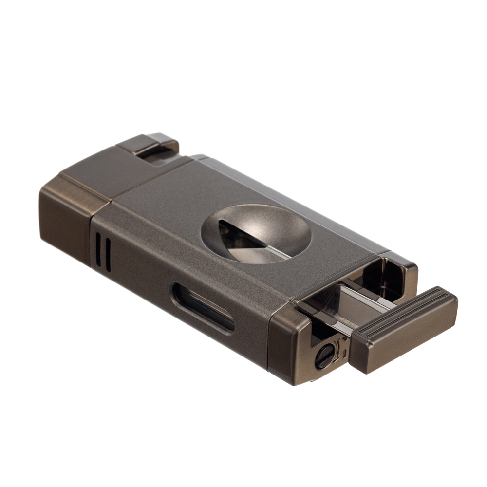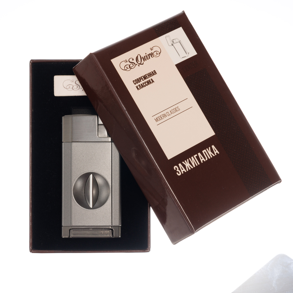 Зажигалка S.Quire газовая, турбо, с гильотиной для сигар, двойное пламя, графит